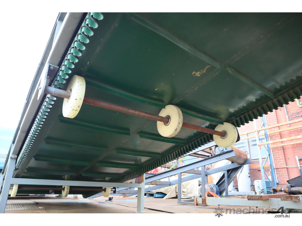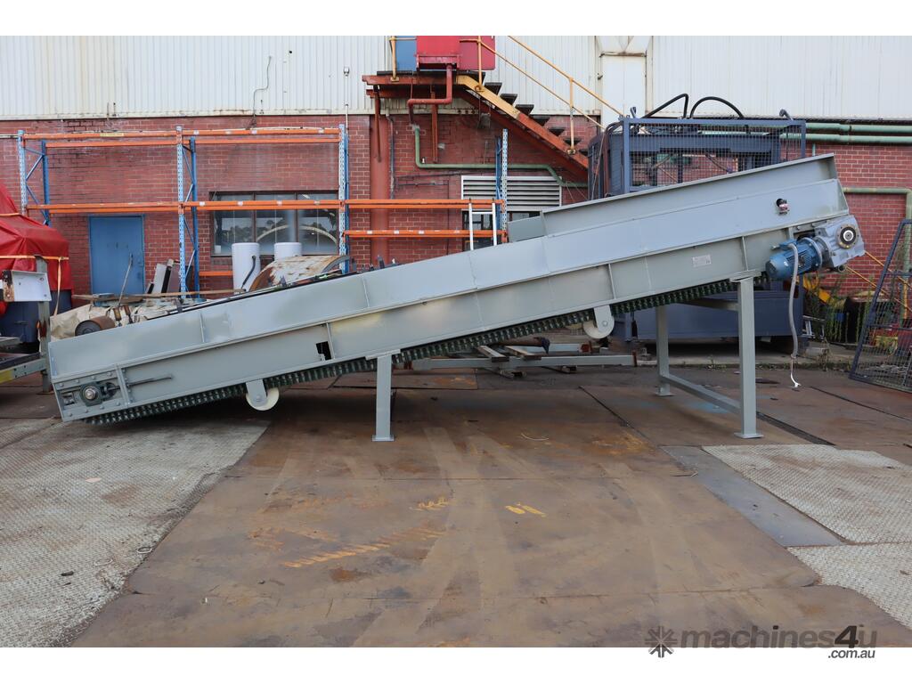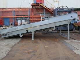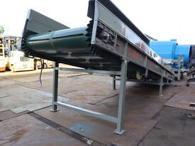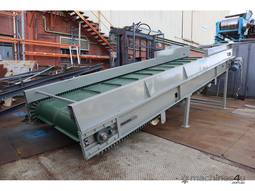 This inclined belt conveyor in great working condition. Designed as a straightforward and practical conveyor for general material conveying where elevation change is required.