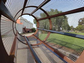 The frame and body is constructed out of steel and the mesh is made out of stainless steel.
