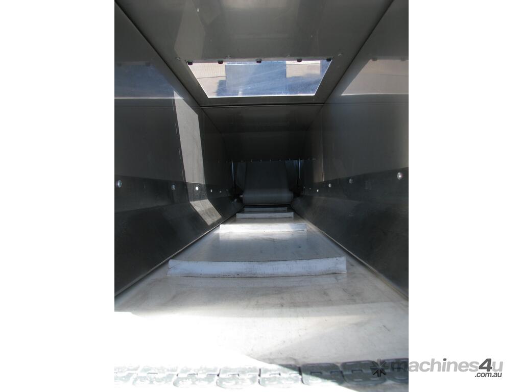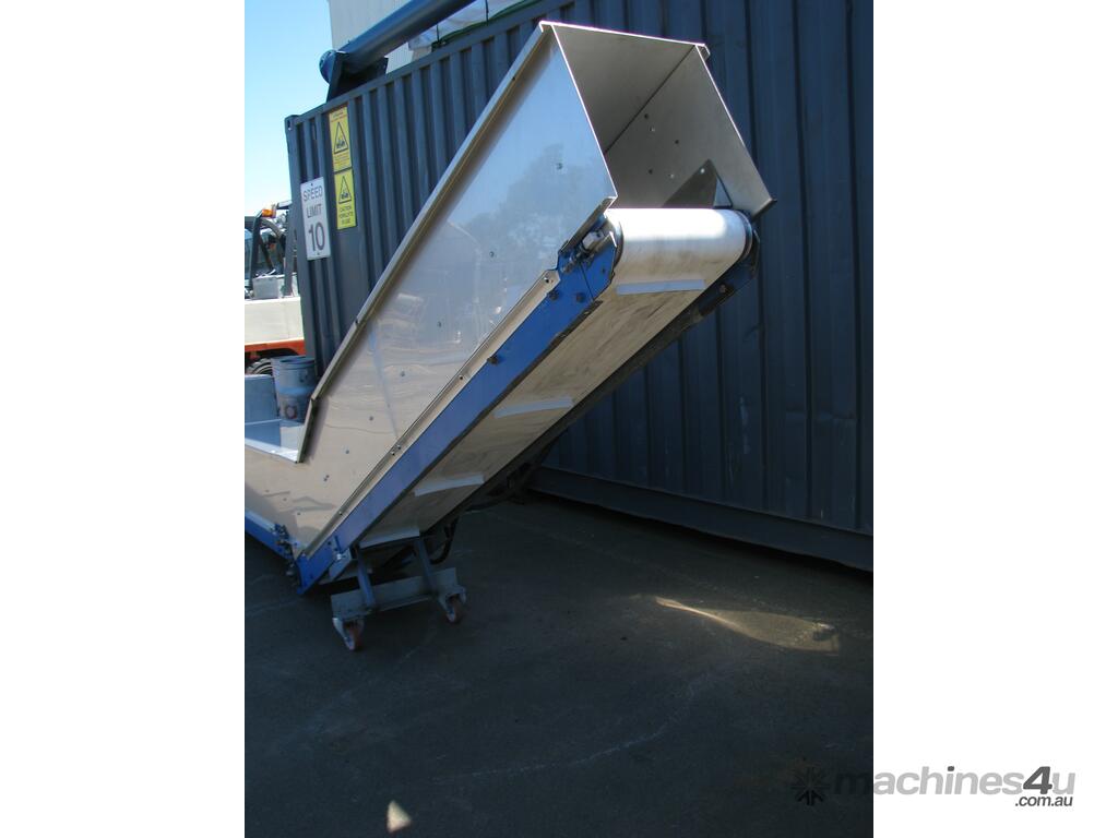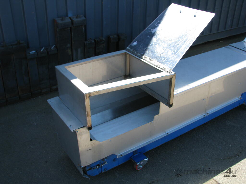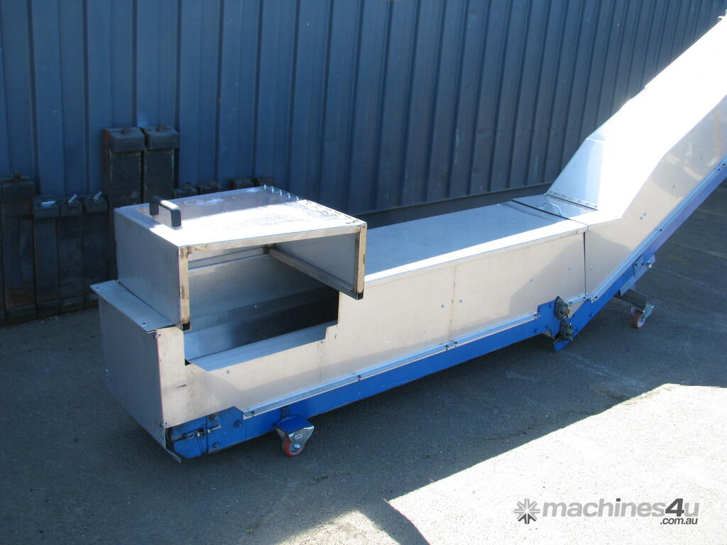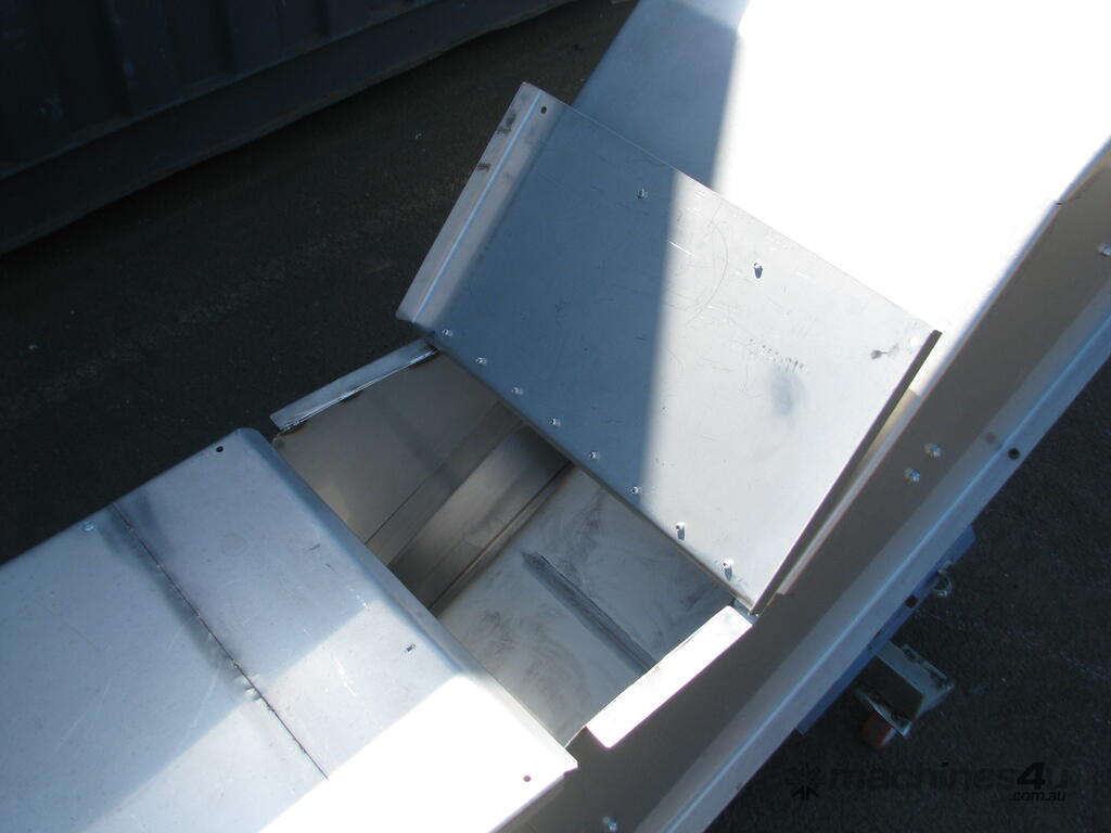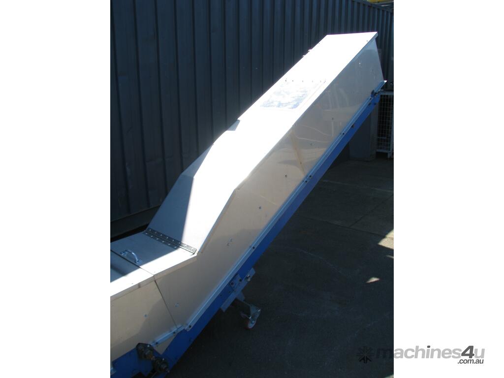 The covering is made out of stainless steel, the incline section has a cleated belt.