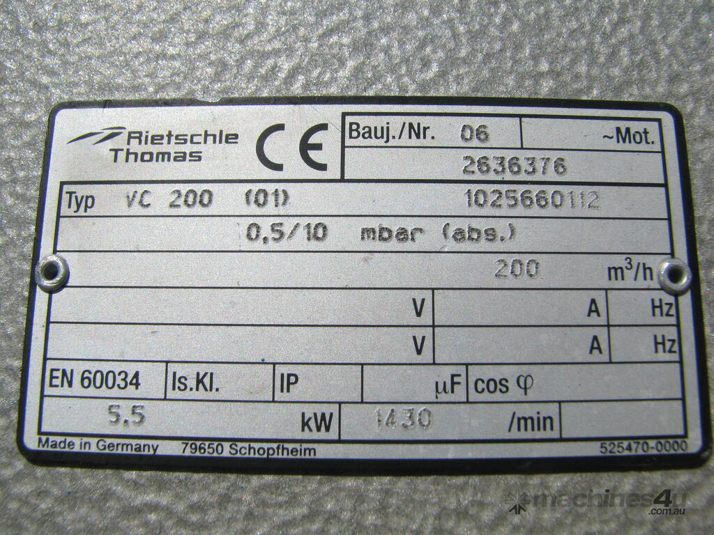 The system consists of one large tank and two 5.5kw vacuum pumps.