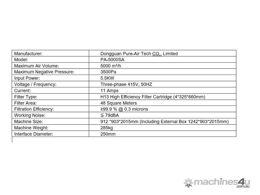 New version PA-5000SA-B laser fume extractor, 4 cartridge filters, air flow 5000m3/h 3 ph, 400V