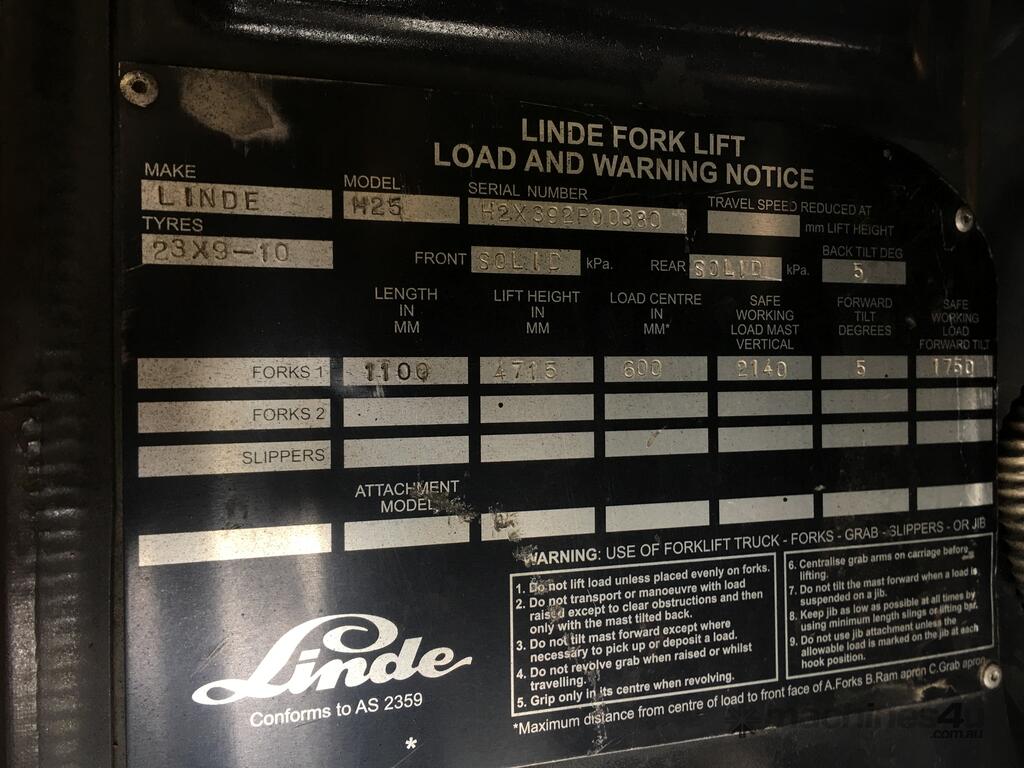 Late Model Linde H25T 2.5ton 4.7m Container Mast Side Shift Very Low HRs Great ! :      $8,627 AUD($9,490 Inc. GST)