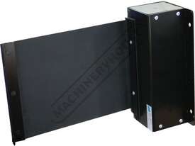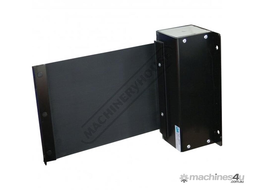 The cartridge roller blind consists of two steel rectangular boxes housing a robust neoprene nylon material, the nylon material is spring loaded and when extended out of the box it covers over the exposed shafts. A complete LSG system consists of 2 roller blinds, 1 set of brackets. One box is fitted to the tailstock end of the machine; the other is fitted to the left hand side of the saddle. Depending upon obstructions on certain types of machines, additional fixing brackets may be required.