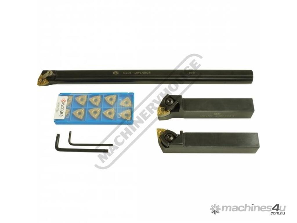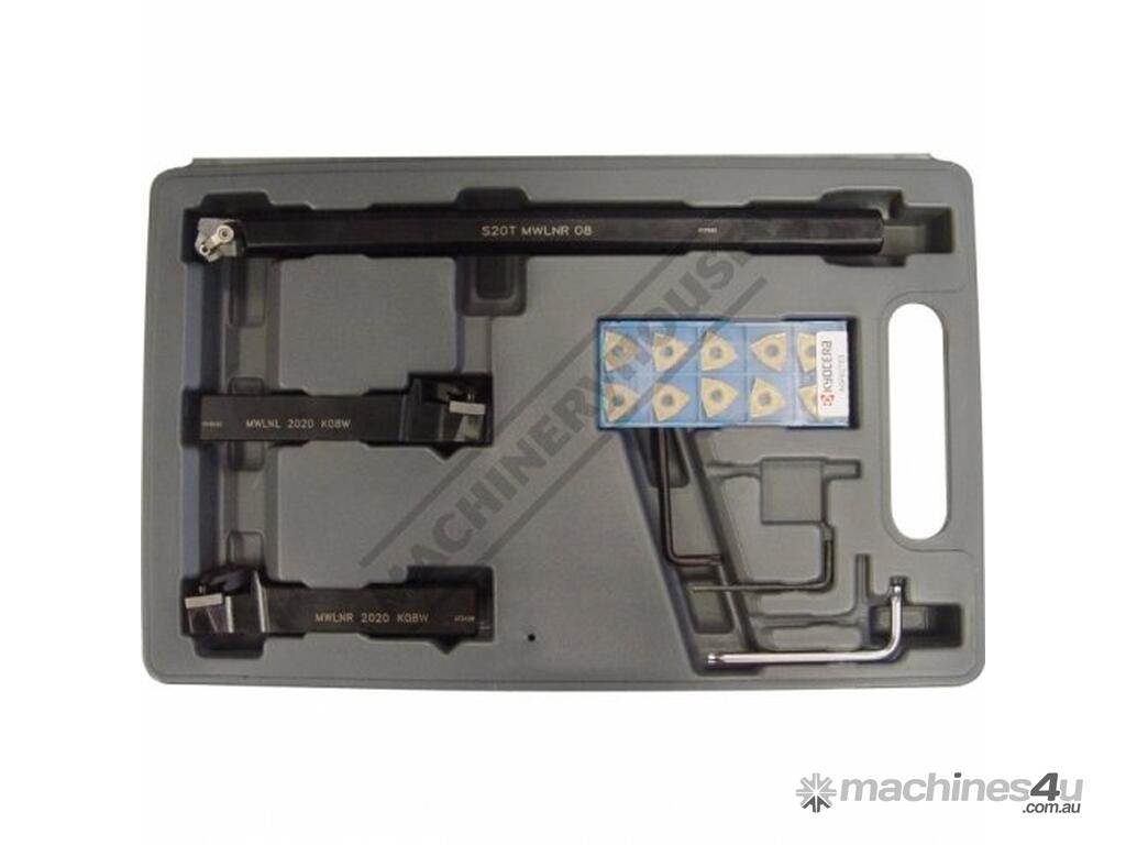 Compact turning kit with right hand and left hand turning tools and a boring bar. The kit is designed so that all the tools use the same inserts.