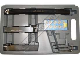 Compact turning kit with right hand and left hand turning tools and a boring bar. The kit is designed so that all the tools use the same inserts.