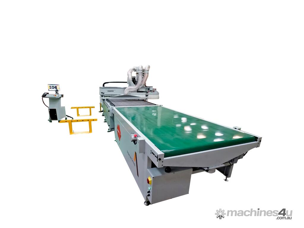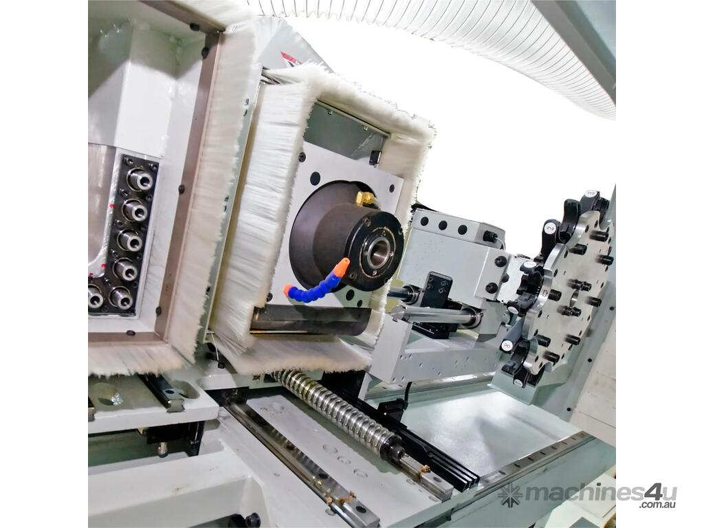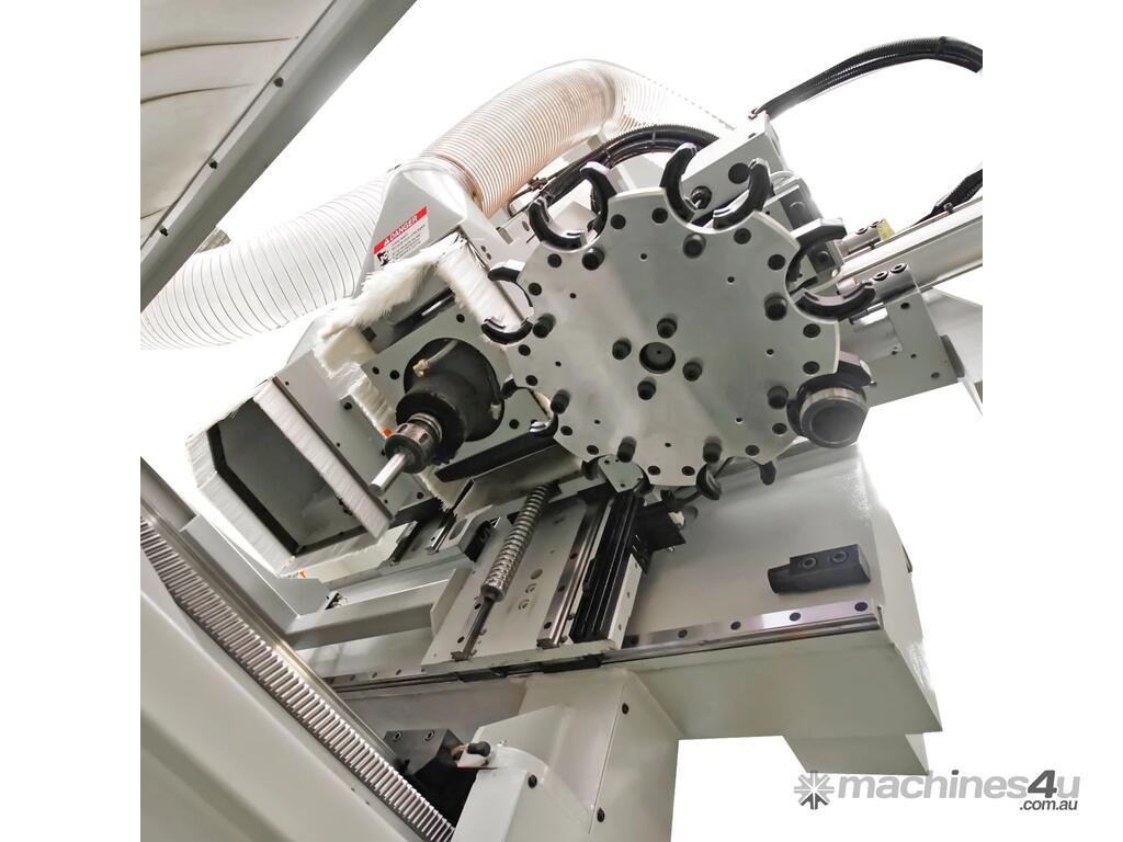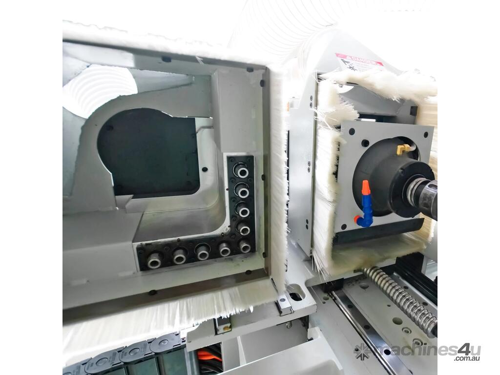 Advanced Control & Safety: Operated by a SYNTEC industrial control and includes an integrated tool touch-off device, efficient dust collection, and photocell safety curtains.