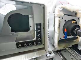 Robust Spindle & Tool Changing: Features a powerful 10HP HSK electro spindle (1,000-21,000 RPM) paired with a 8-position static tool changer and a multi-spindle drill head.