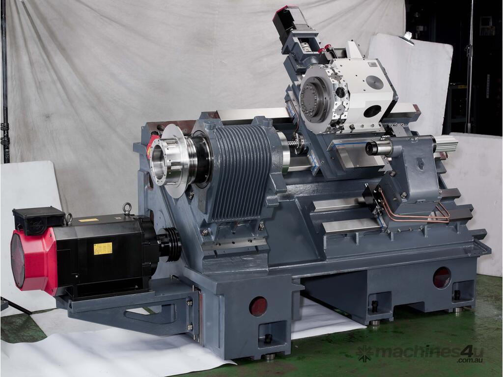 The massive headstock, rigid spindle, and superior bearing design, along with high RPM, facilitate heavy stock removal and precision tolerances.