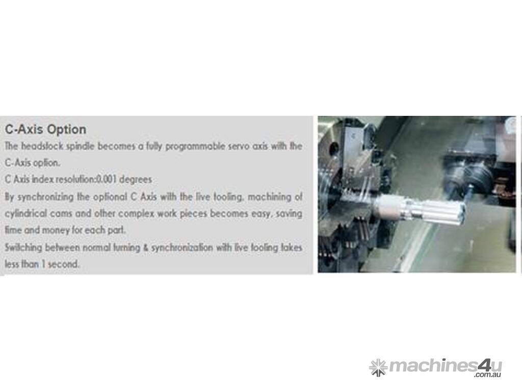 By synchronizing the optional C Axis with the live tooling, machining of cylindrical cams and other complex work pieces becomes easy, saving