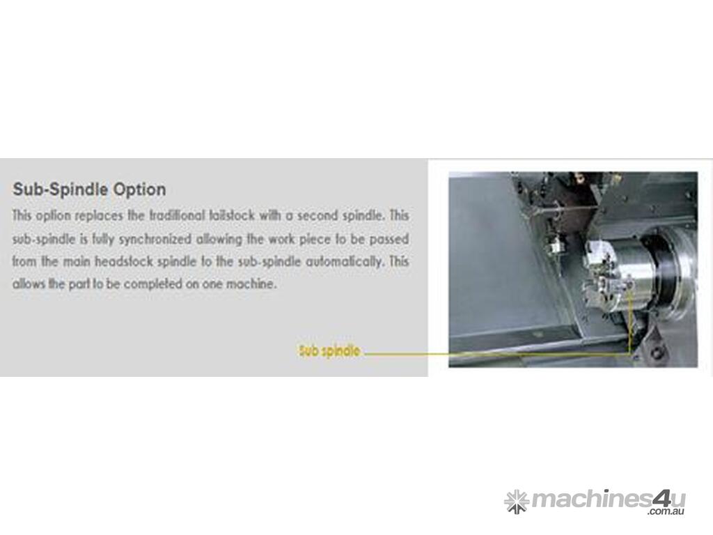 This option replaces the traditional tailstock with a second spindle. This sub-spindle is fully synchronized allowing the work piece to be passed from the main headstock spindle to the sub-spindle automatically. This allows the part to be completed on one machine.