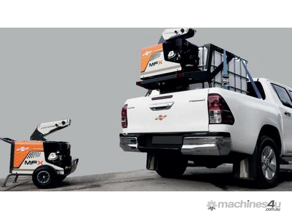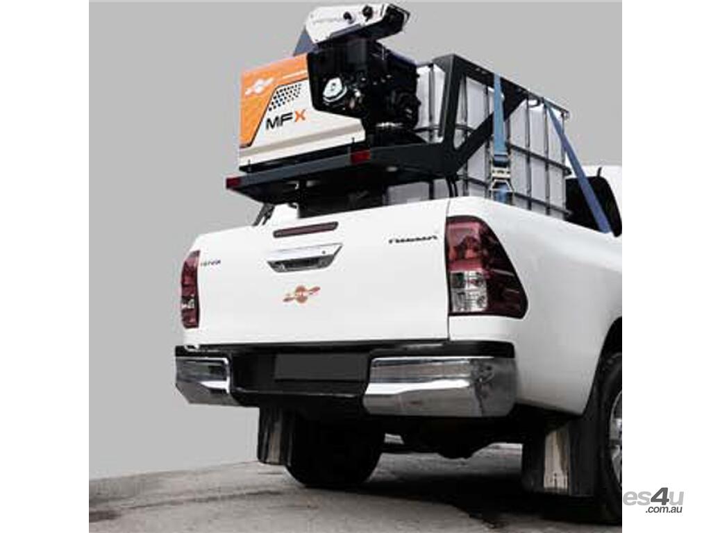 With its custom designed support kit, mounting it onto any standard IBC, it also easily fits in the back of a ute, where it can be deployed in seconds, anywhere, with up to an hour of operation from a single, quick to fill tank.