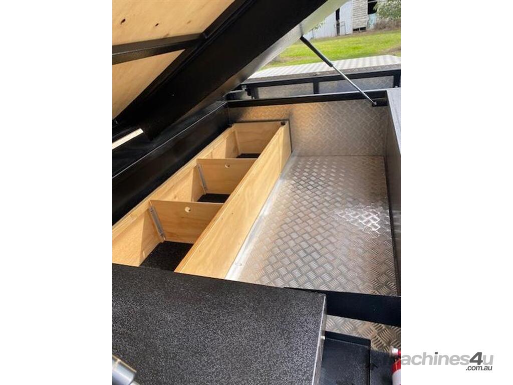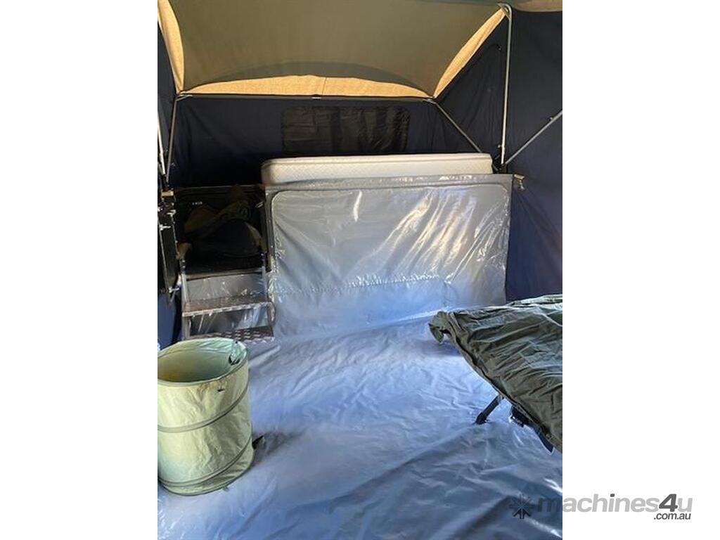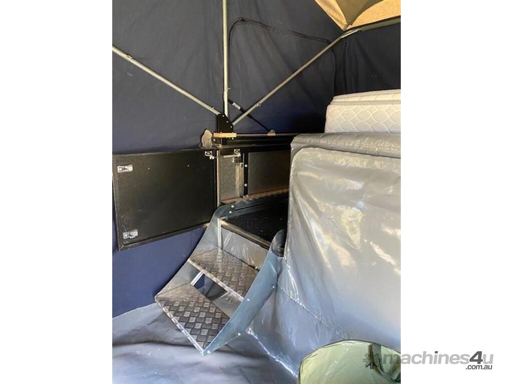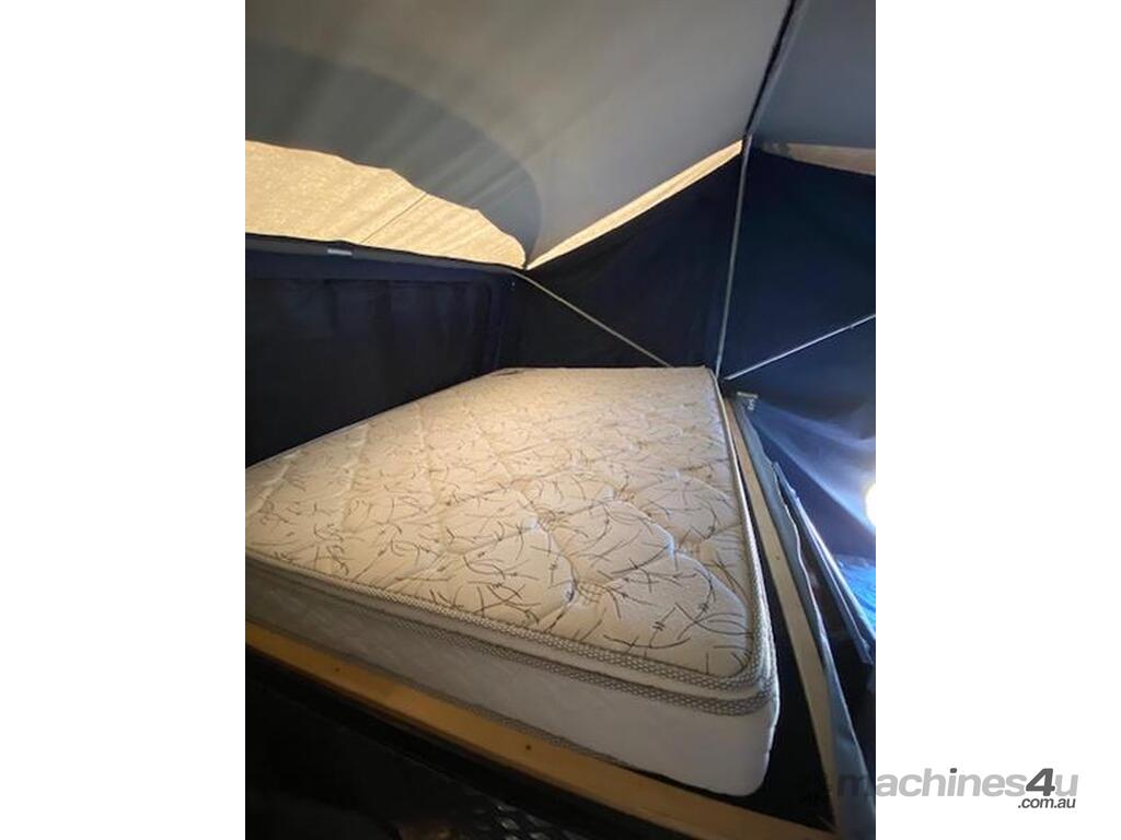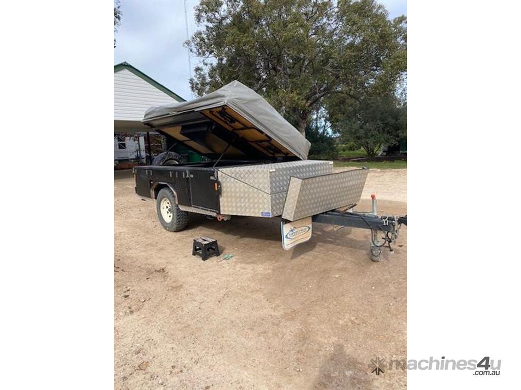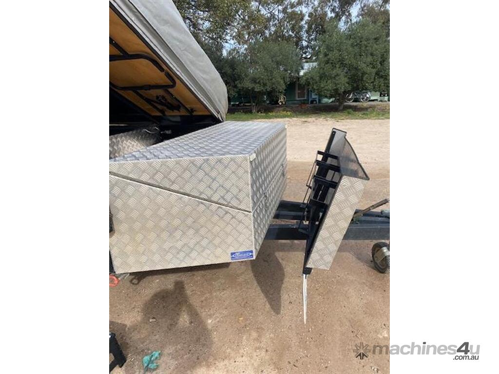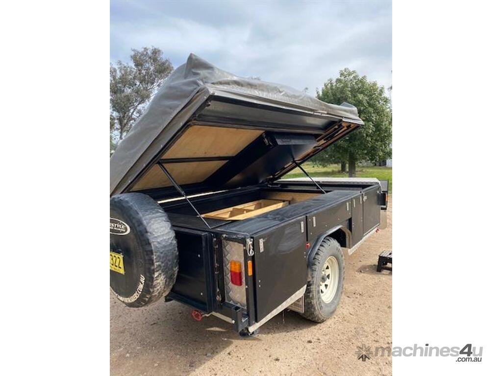 Lifestyle Extenda Camper Trailer,All terrain tyres,single axle,Electric brakes,Kitchen and pull out staorage drawers,Drop down stabiliser legs,Checker plate front storage box,there is also a chequer plate motorbike rack that can be swopped in where the storage box goes,drawbar is extended and a space for fuel cans.Several lockable compartments,PVC tonneau cover,Sleeps 5 ,Australian built,Trailer dimensions 1830w x 5180l approxiamately ,tare 850kg,ATM 1750kg,GVM 1,590kg,Selling as Children have grown up and