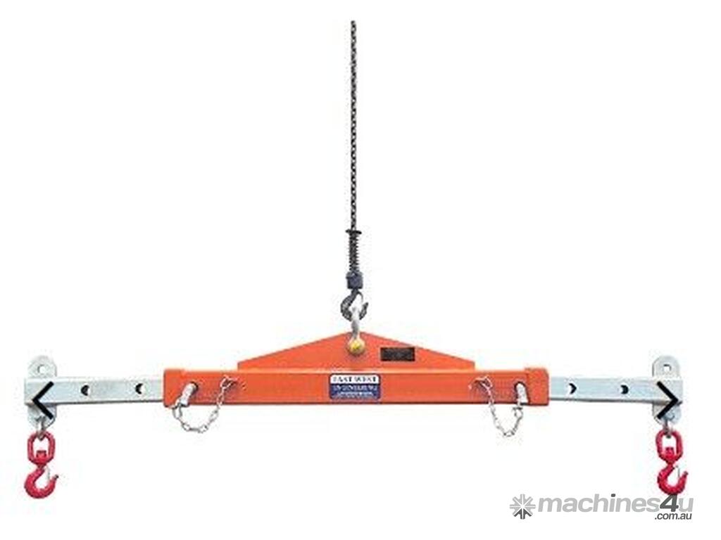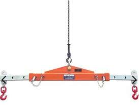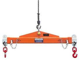 It can be used as a Lifting Beam by attaching the load to the centre single hook point, or as a Spreader Bar by securing the slings to the ends of the bar and on the hook of the crane or forklift jib.