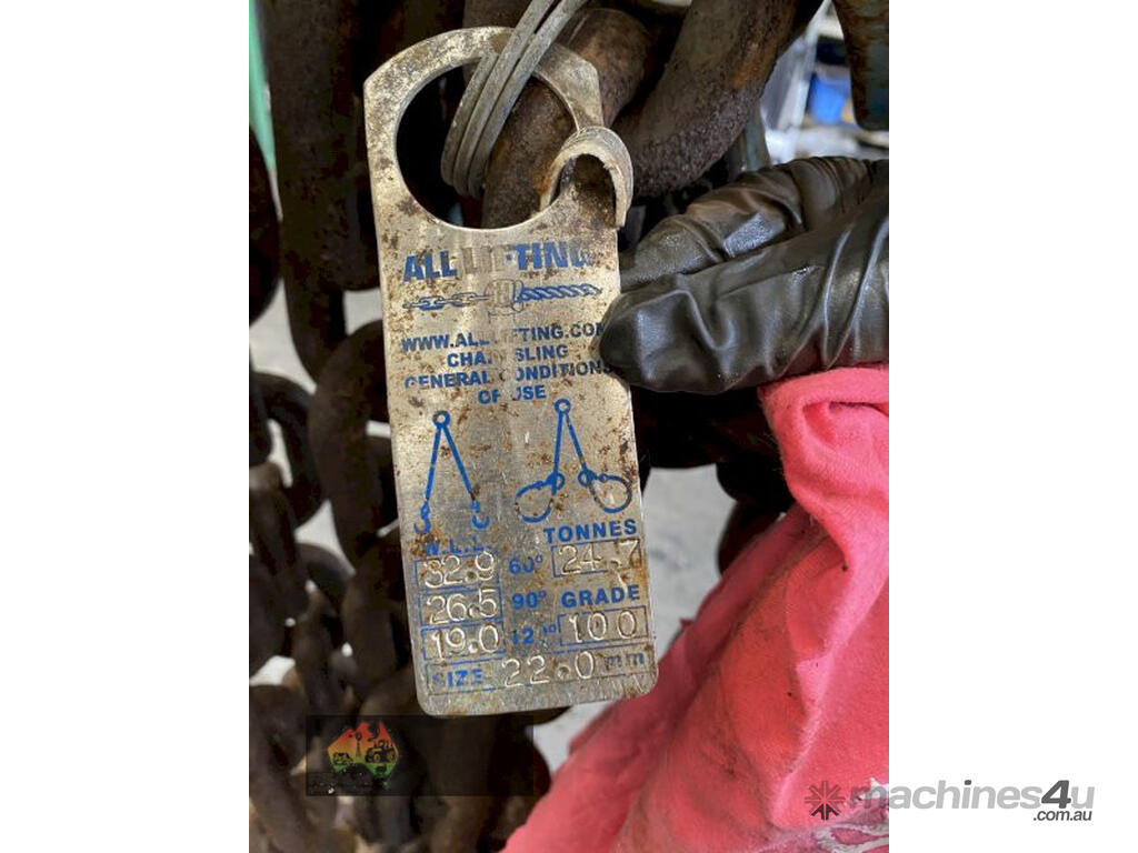 2 sets of 2 drop x 32 tonne cap x 6 metres with shortners. Buyer needs to have certified and will be sold as scrap on invoice