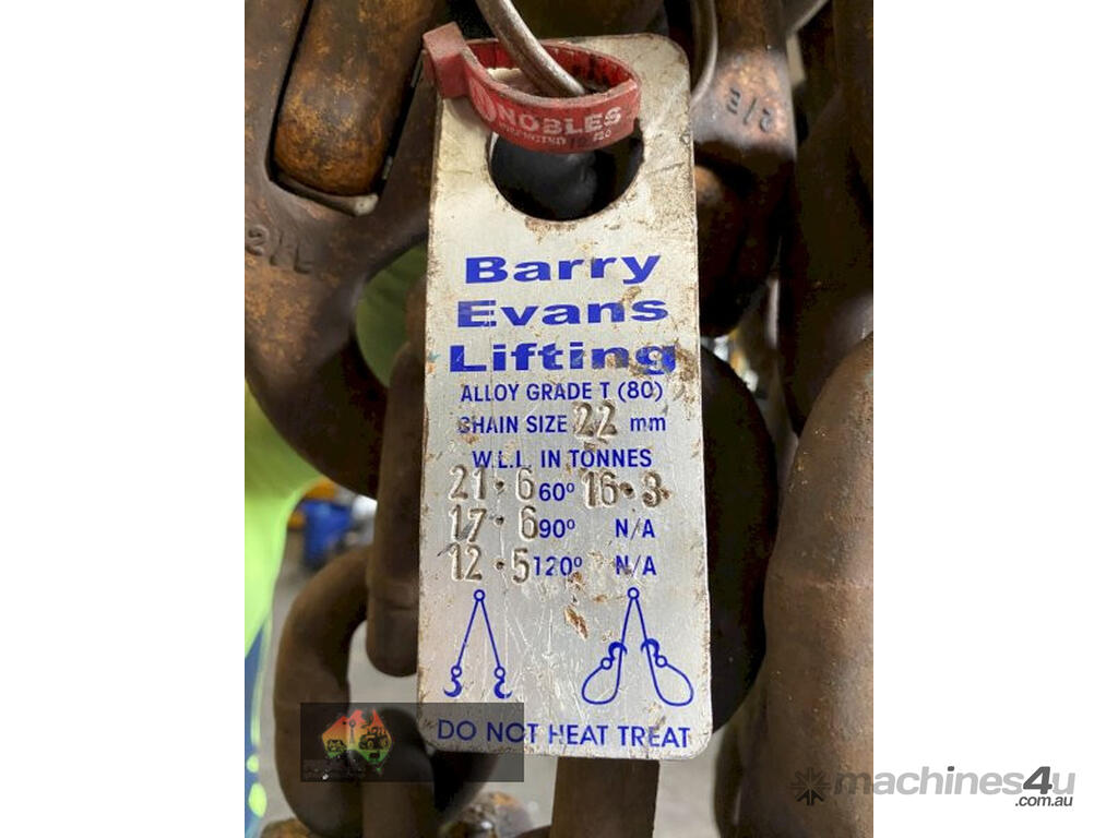 1 set of 2 drop x 21 tonne x 6 metres with shortners . Buyer needs to have certified and will be sold as scrap on invoice.