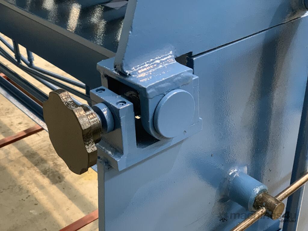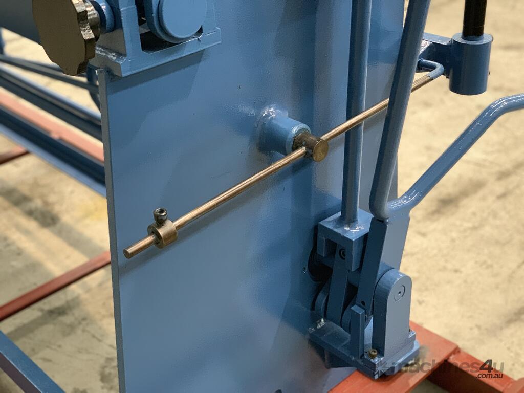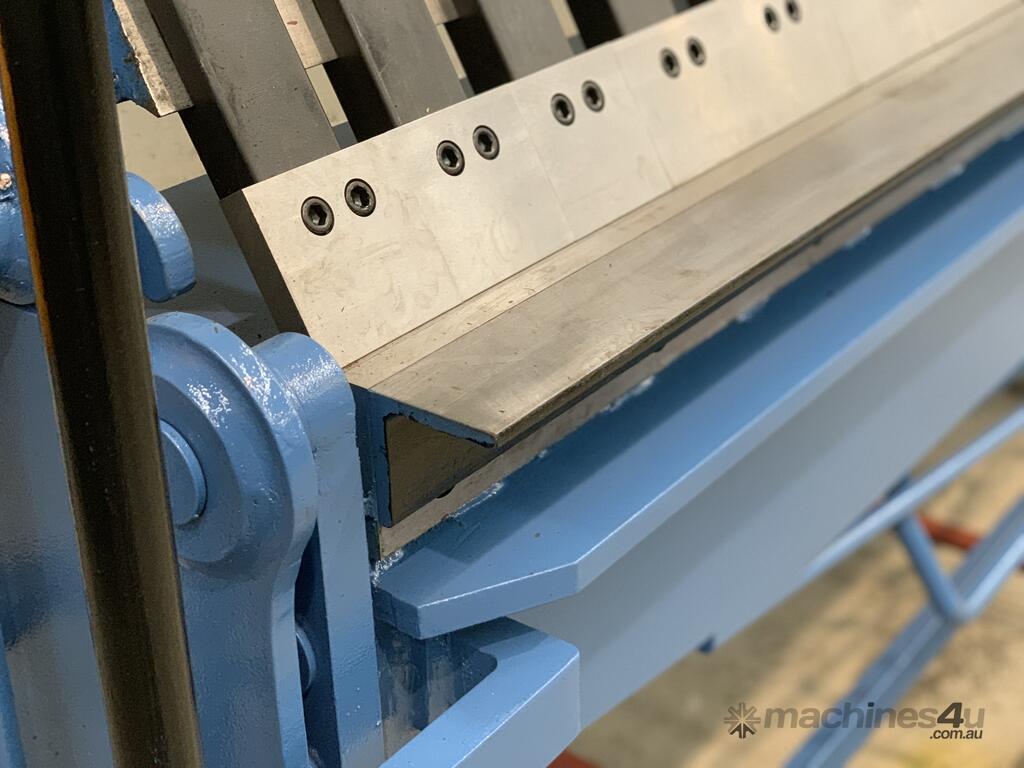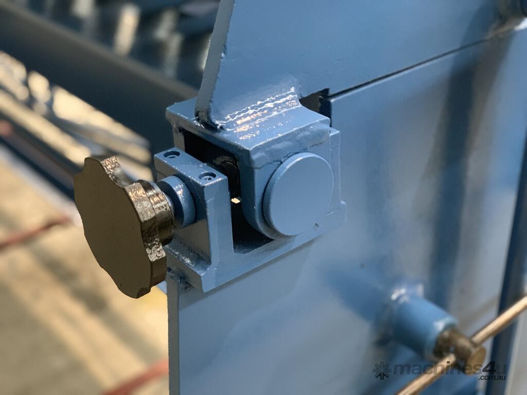 this Australian designed sheet metal panbrake is a real brute! check out the 1150kg heavy duty steel construction! it's easy to see that it's built for many years of use and abuse. hardened and ground fingers, bending edge, 125° bending range, gear driven thickness adjuster, work stop and radius adjustment.