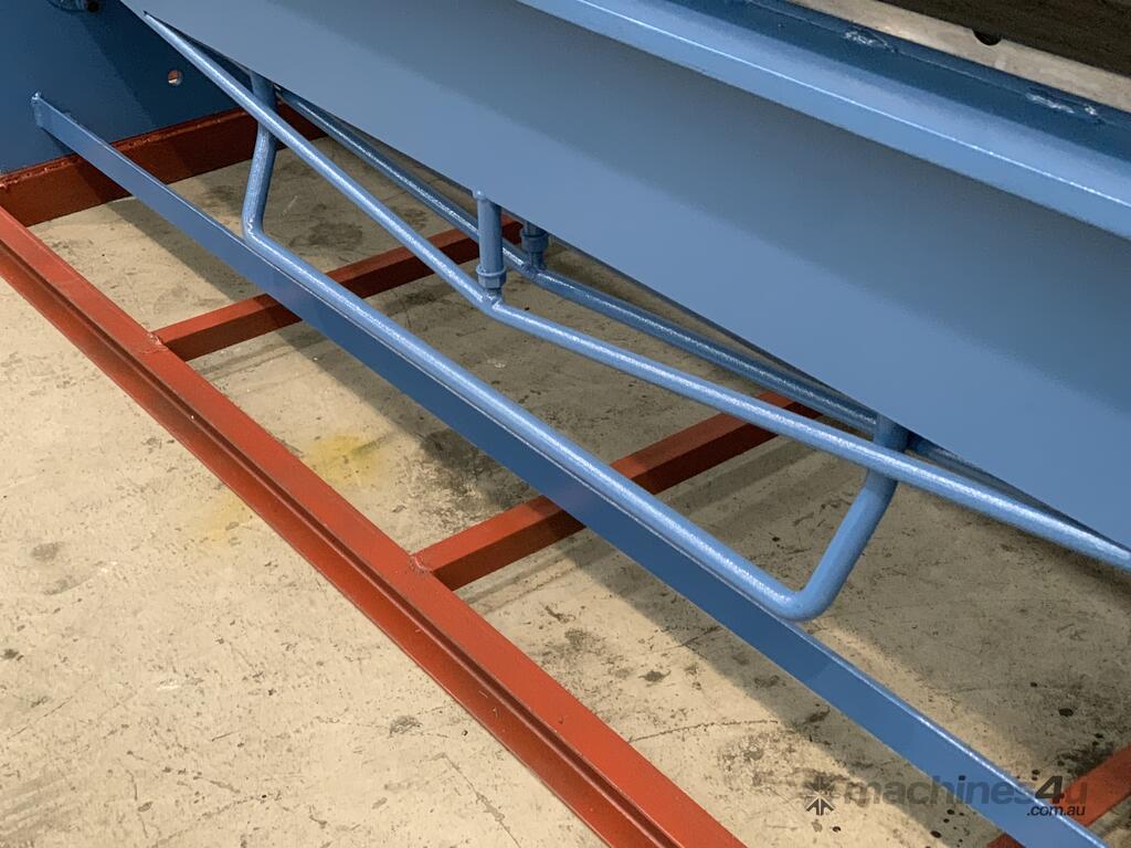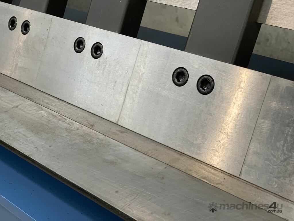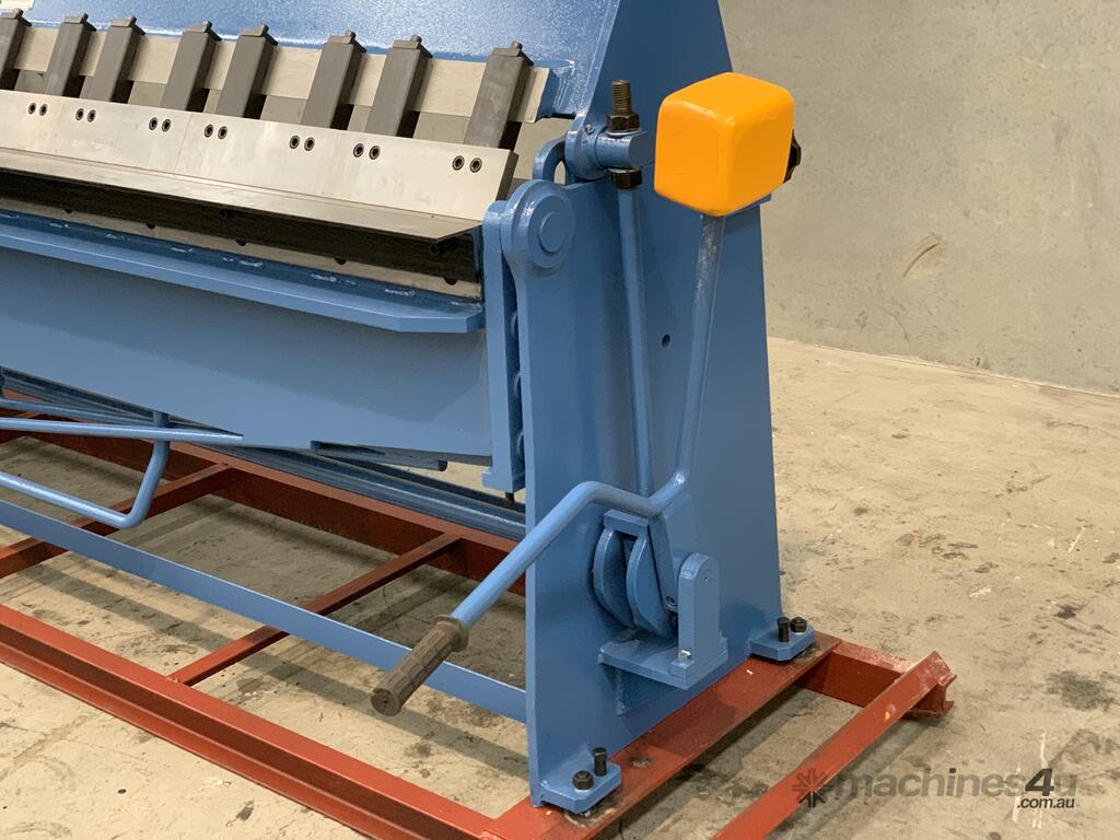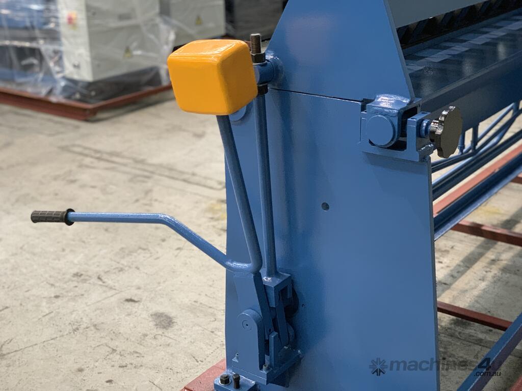 this Australian designed sheet metal panbrake is a real brute! check out the 1150kg heavy duty steel construction! it's easy to see that it's built for many years of use and abuse. hardened and ground fingers, bending edge, 125° bending range, gear driven thickness adjuster, work stop and radius adjustment.