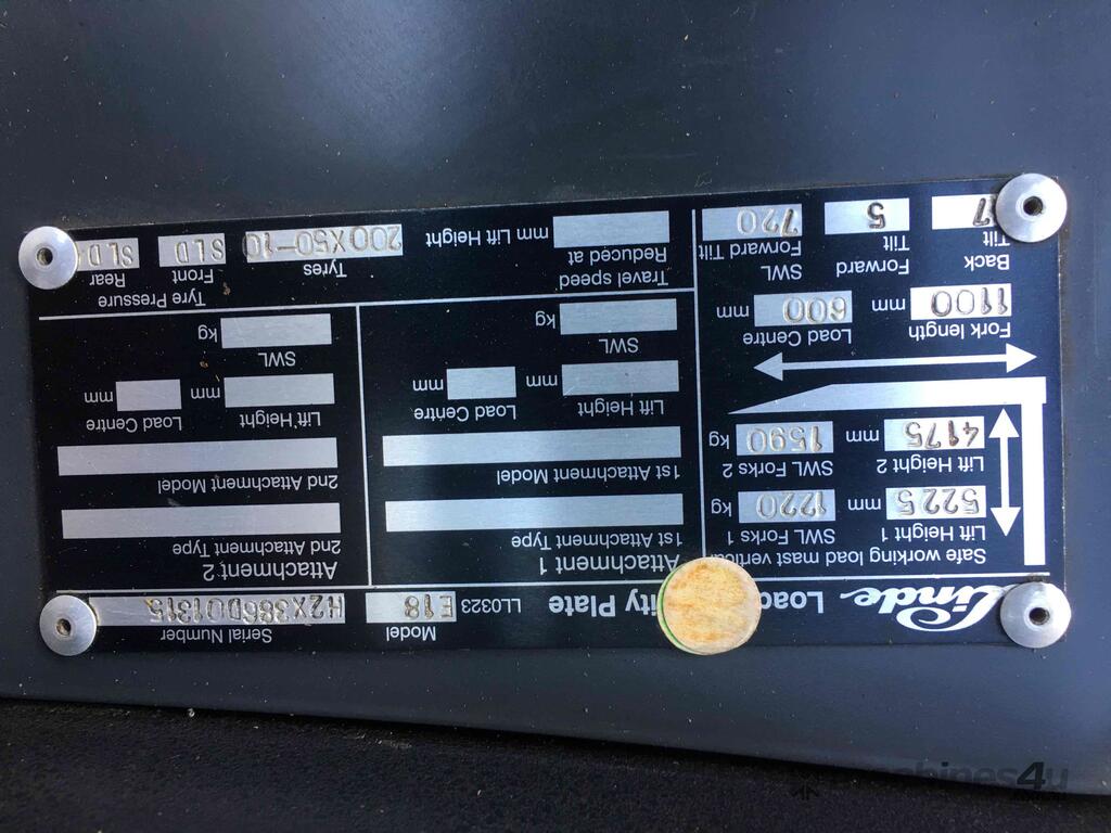 Linde E16 5.2m 2015 3000hrs battery great side shift like new performance all working warranty :      $15,990 AUD($17,589 Inc. GST)