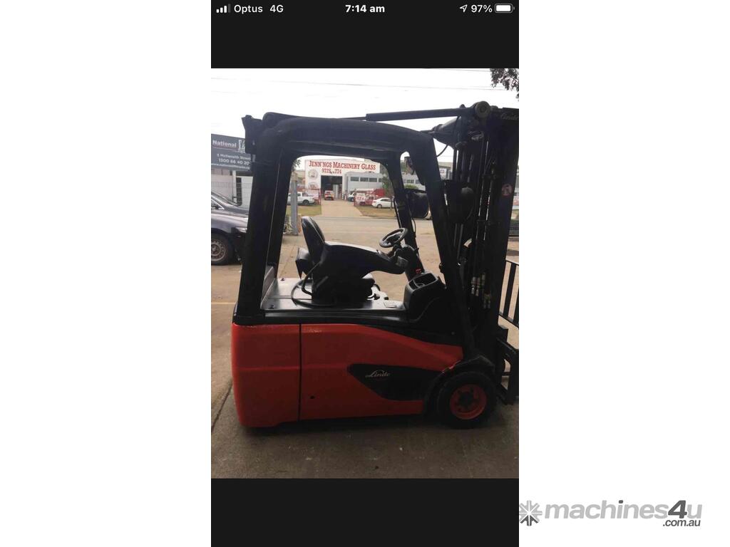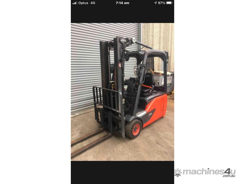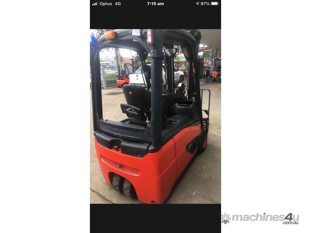 Linde E16 Latest Model Warranty 1.6Ton 3 Wheeler 2015 Low Hours Great Batt :      $17,990 AUD($19,789 Inc. GST)