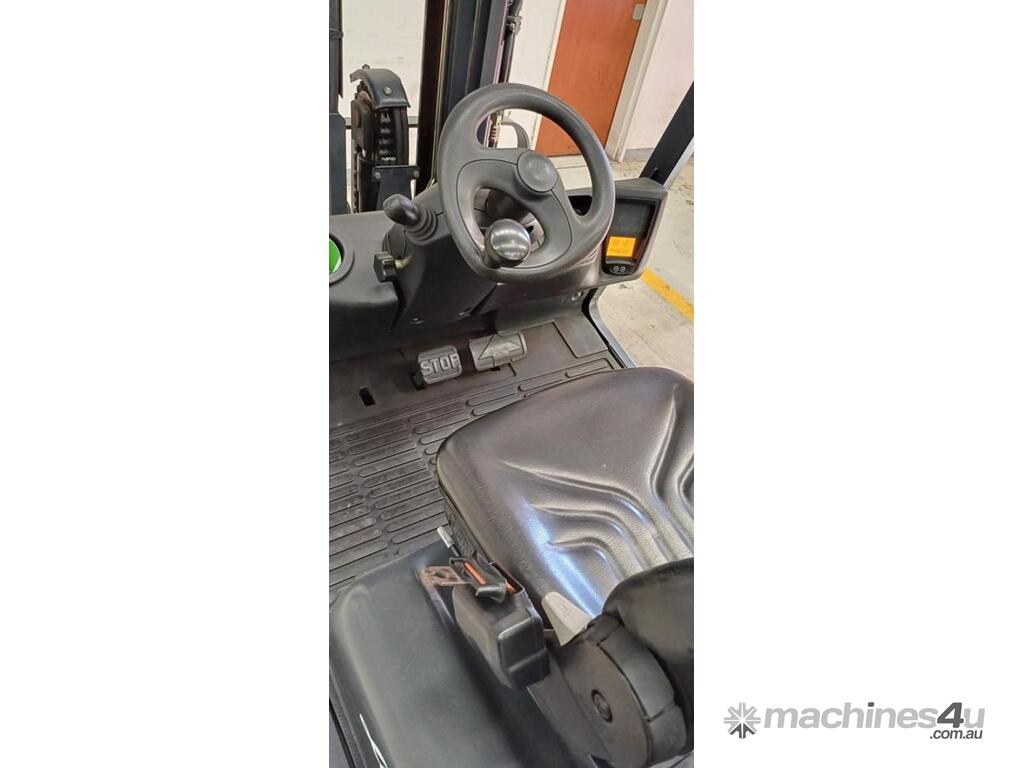 This model is equipped with a side shift attachment, allowing for accurate positioning of loads to enhance efficiency.