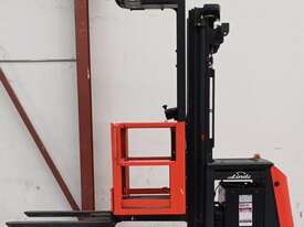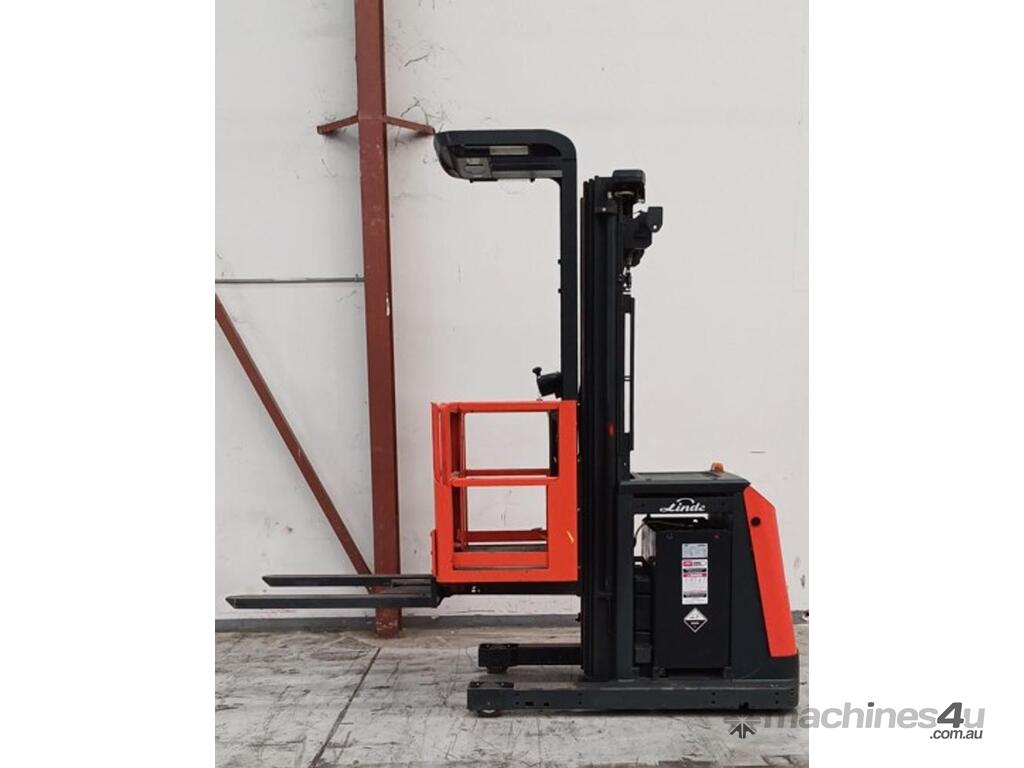 The Linde V12, 015 series is a high-performance very narrow aisle (VNA) order picker.