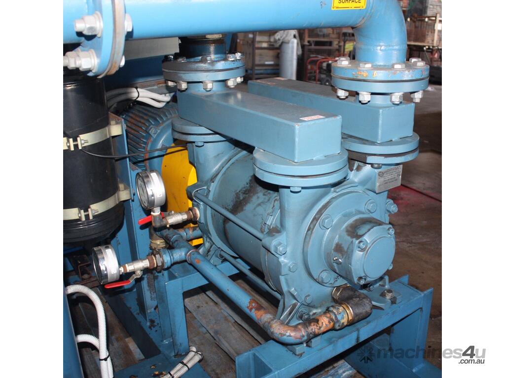 EMTIVAC 22kW Liquid ring vacuum pump with skid, sealed liquid recirculation and cooling.