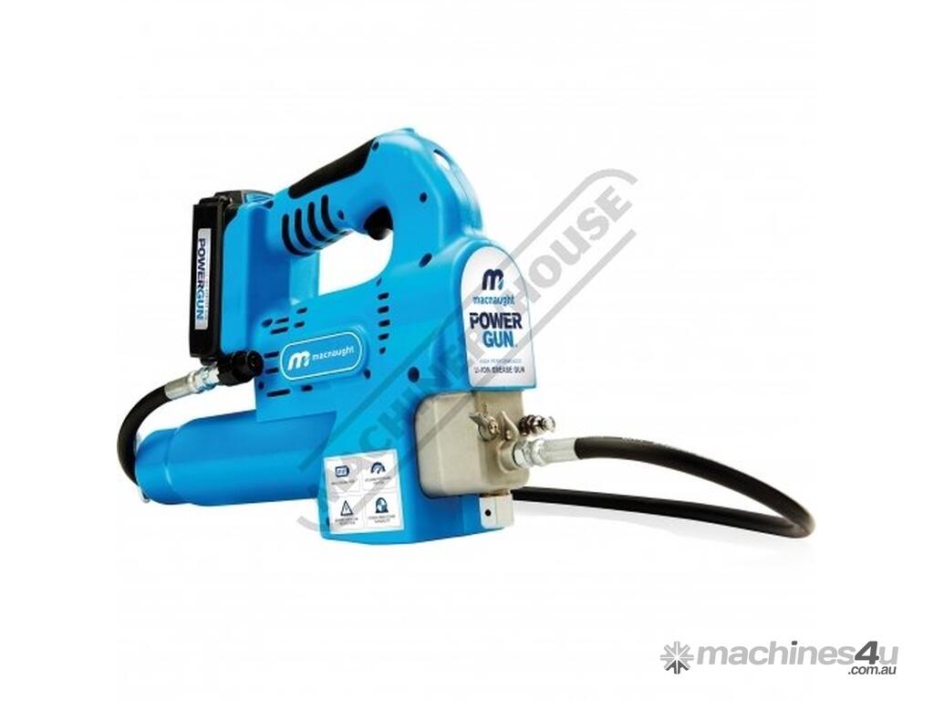 POWERGUN™ 18v Li Ion battery powered grease gun built with Australian conditions in mind. This heavy duty grease gun combines the power and portability of high spec 18v Li Ion battery technology with the robust durability of cast alloy and steel pressure components to produce a product capable of serving in the most demanding conditions. Fitted with an illumination LED, a 1m long flexible grease hose and Macnaught’s legendary 3 Jaw SUPERGRIP™ Grease Coupler even the most difficult to locate and access grease points are within reach.
