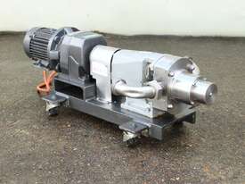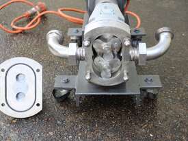 Lobe Pump, "SSP Mono", Model SR2-013-LS, S/S wetted parts, 38mm inlet outlet, set up on base, 0.55kW 55 rpm geared motor, designed to do 0.128L/rev