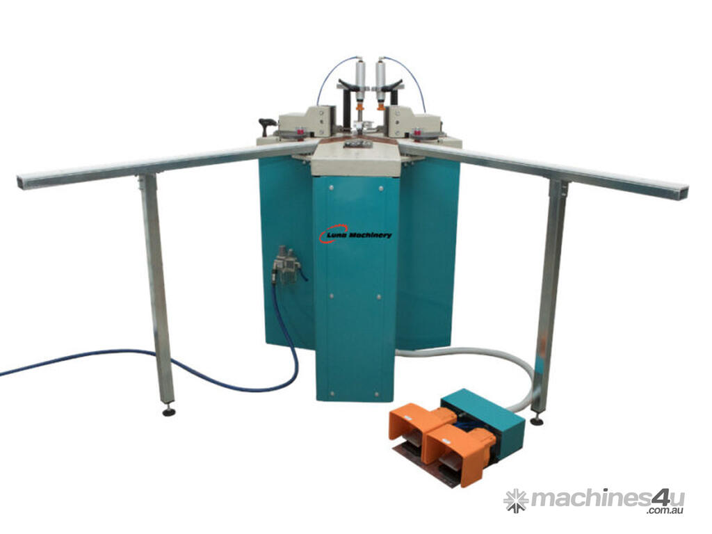 The Luna Gamma Aluminium corner crimping machine offers the fastest and easiest way to assemble awning and sash windows. All of our crimpers feature 2 over head vertical pneumatics clamps ensuring the section is held tight. A retractable centre support makes loading the frames easy and safe. Profile support arms help keep the frame level. Scales on all settings make it easy to adjust the crimper from one section to another. If you make awning or sash windows and wish to save time and money in production, this is the machine for you.