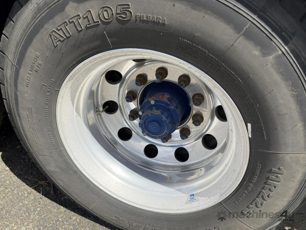 * 2000 Tefco roll back tipper; bin 22'6" x 6'; tarp brand new; lift ram recently re-sealed; Hendrickson HT230 air suspension; drum brakes; tyres/brakes all GC