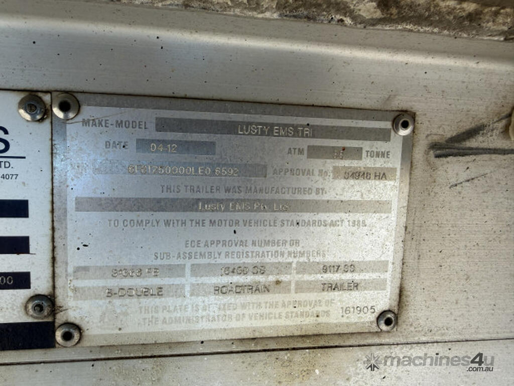 * 2012 Lusty EMS Tri-axle Dolly; disc brakes; BPW airbag; brakes, tyres all GC