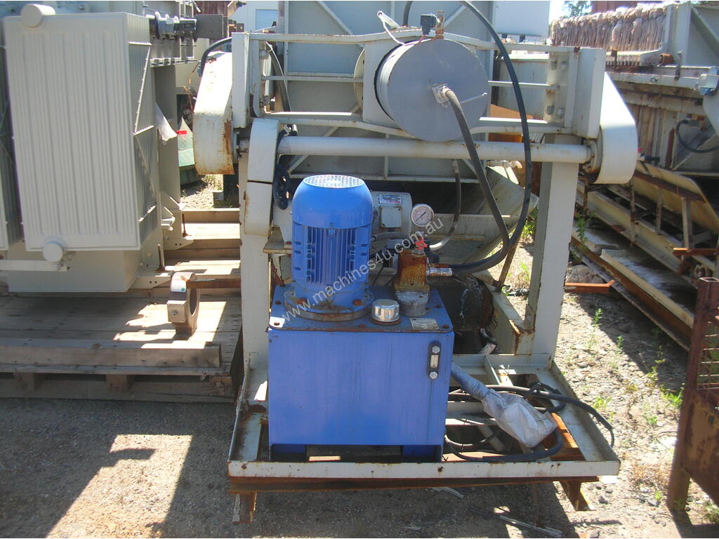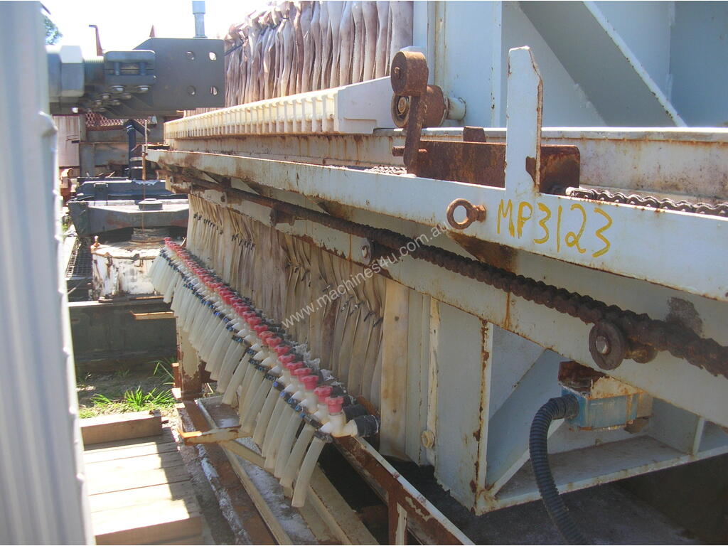Unit is complete with Poly Plates, Hydraulic Open and Close, Auto De-caking, Discharge Conveyor and Control Panel. Ex-Brisbane