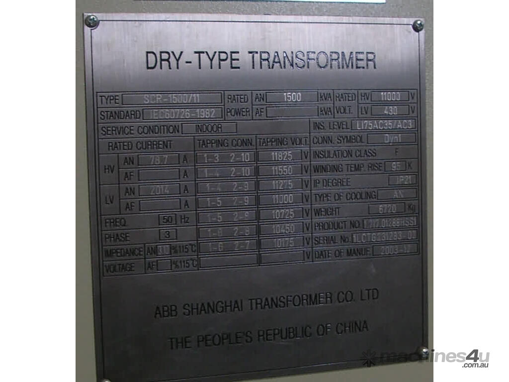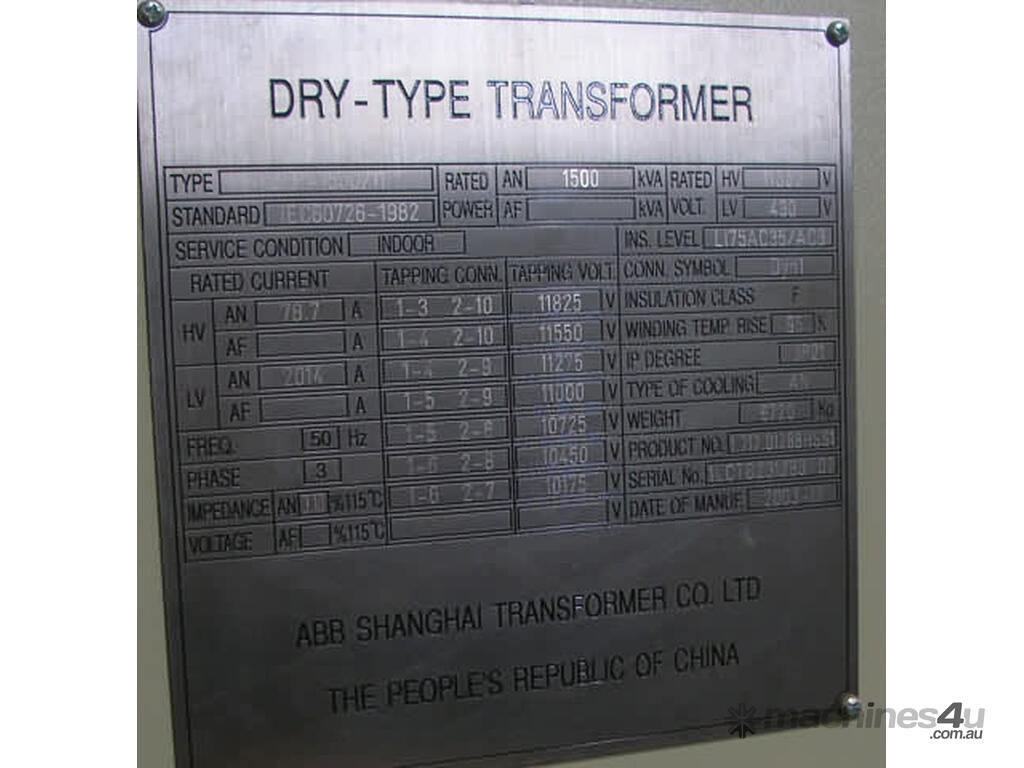 M&Q EQUIPMENT - ABB 1500 KVA TRANSFORMER :      Ask for Price