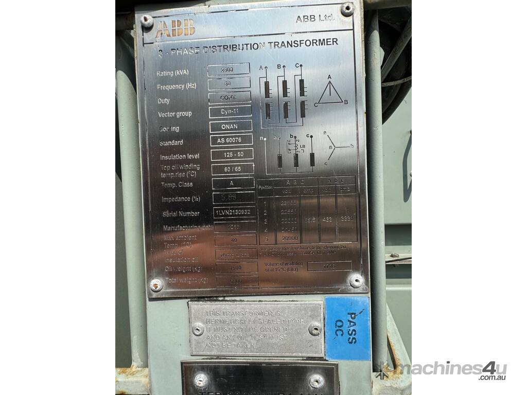 M&Q EQUIPMENT - ABB 2500 KVA TRANSFORMER :      Ask for Price
