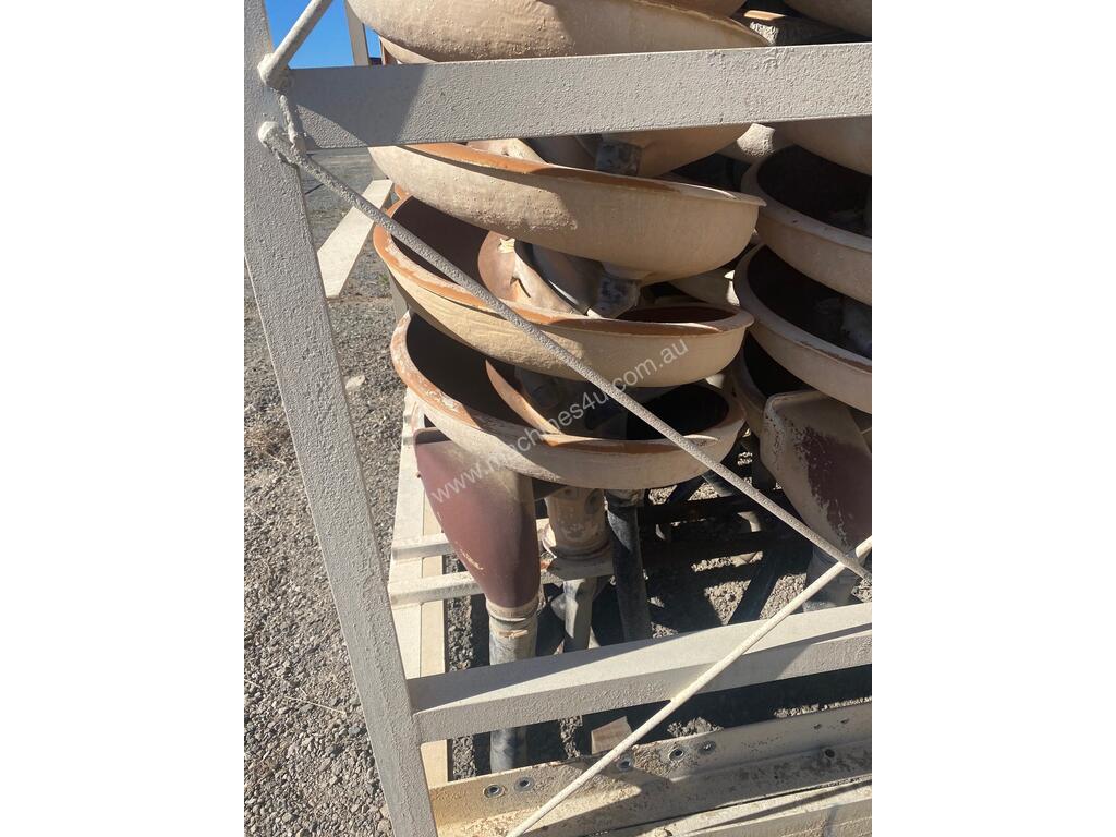 Each Bank has 8 Spirals. Twin Start Spirals. Units are rated at 1.5 Ton Per hour Per Start. Making Each Bank Approx 24 Ton Per Hour. Units are complete with distributors and launders. 18 Banks Available. Ex-Brisbane