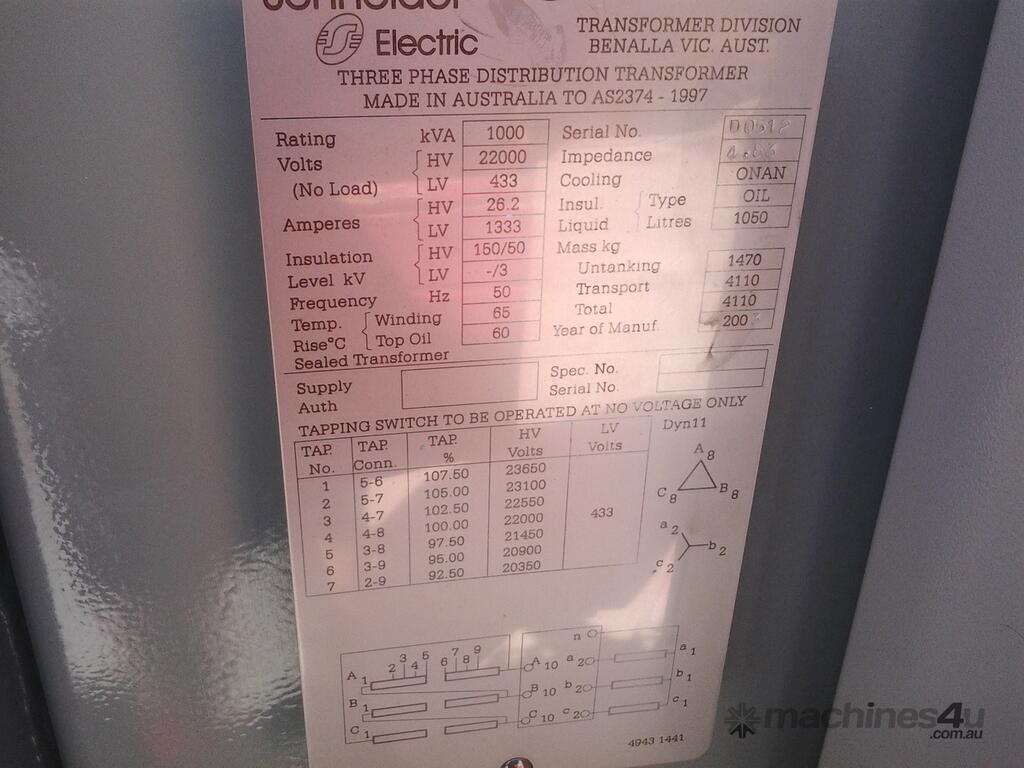 22,000 Volts to 433 Volts - Dyn11. In Excellent Condition.