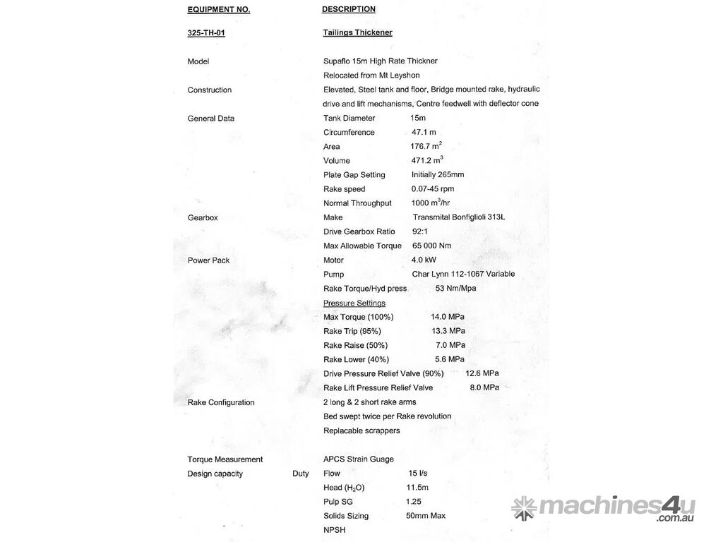 M&Q EQUIPMENT - SUPAFLO 15M HIGH RATE THICKENER :      Ask for Price