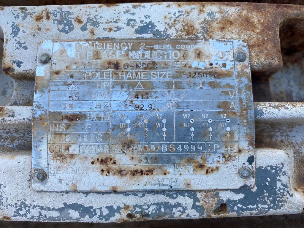 Unit is mounted on a Warman C-ZV2 Base and Guard. Pump is Rubber Lined with a Rubber Impeller and has a 55KW Electric Motor fitted with Pulleys and Vee-Belts. Offered As-is Ex-Brisbane