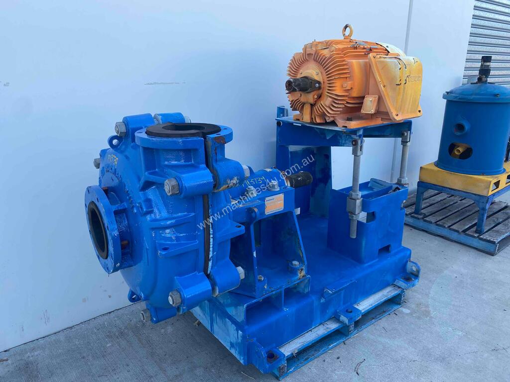 Unit is Unused from new. It is rubber lined, metal 6 cane closed impeller, gland seal mounted on a ZV style base with a 75kw electric motor.