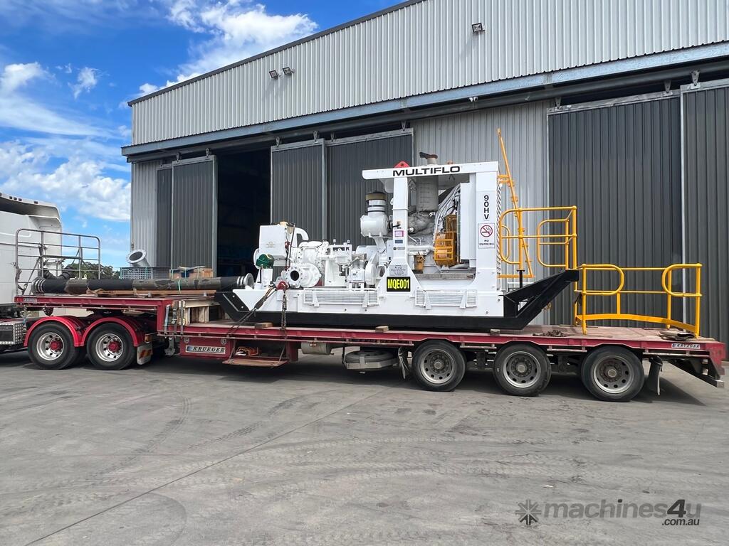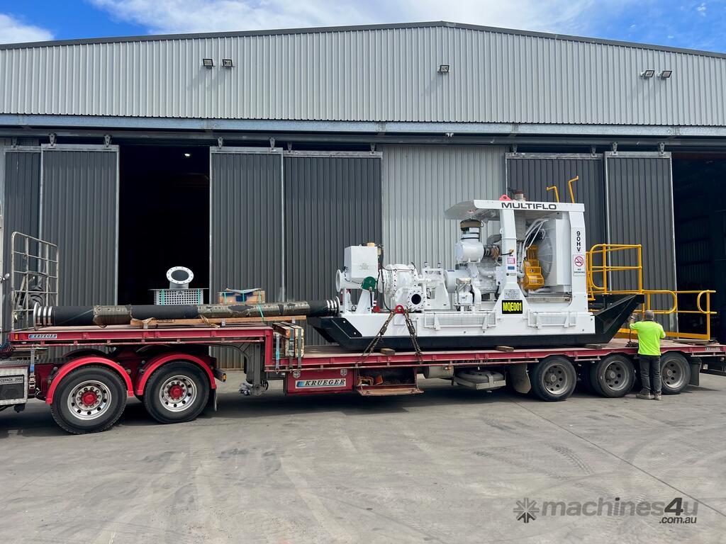 Unit is Complete with Cat C18 Engine, Skid Base, Suction Hose, Front A Frame and Suction Valve. The unit is Mine Spec and ready to go. The Capacity is 250-300 Liters a Second 95m Head. It has a Vacuum Pump fitted to assist with self priming and a non return valve fitted on the discharge.