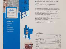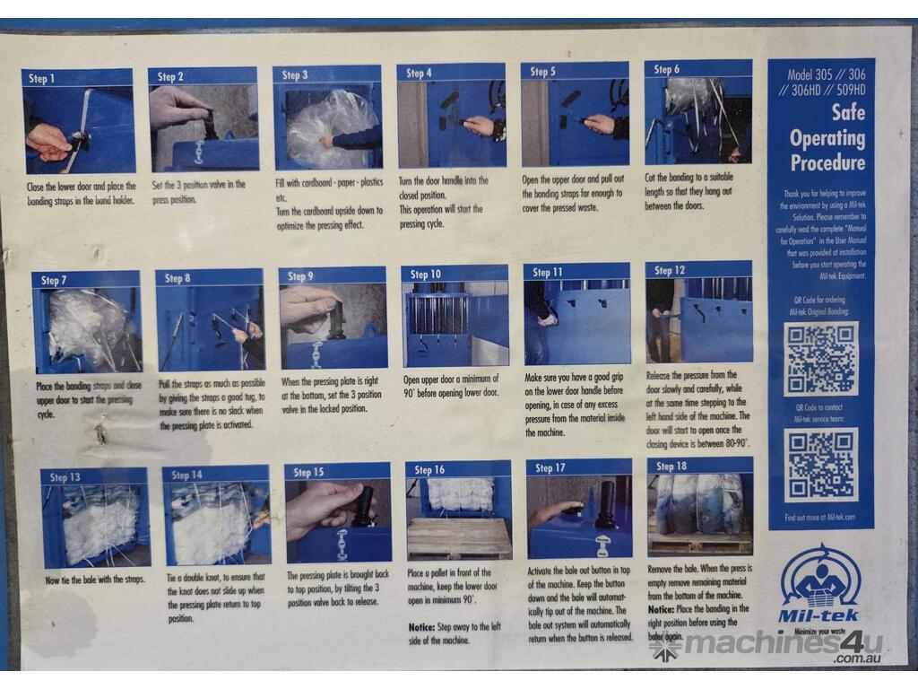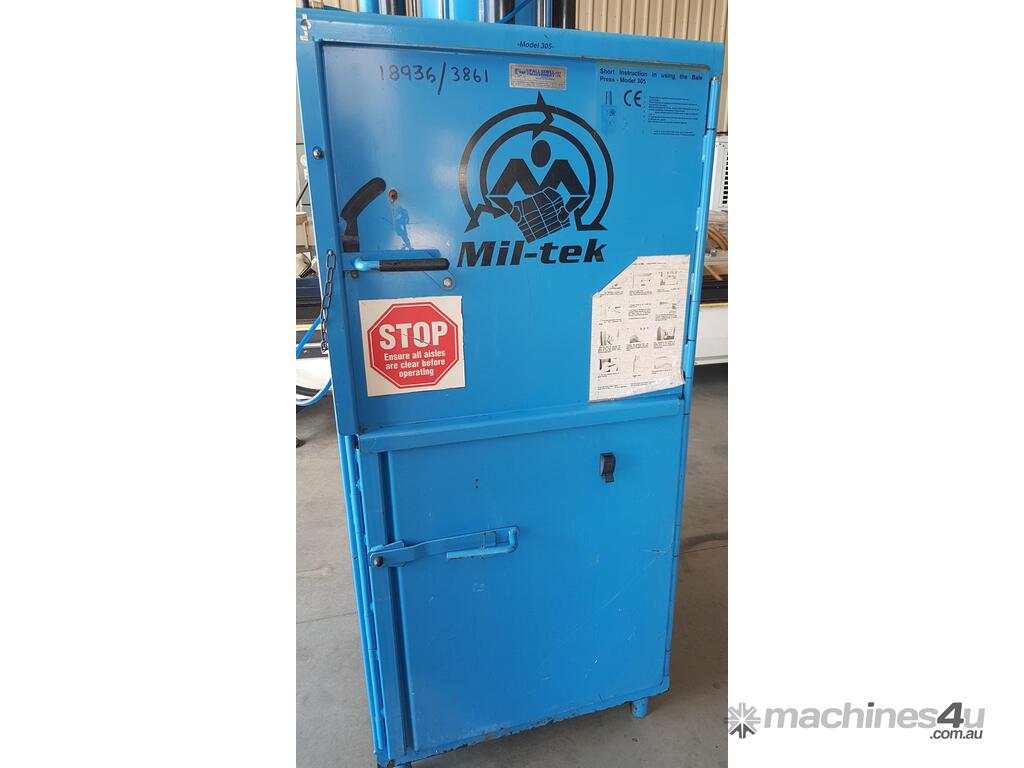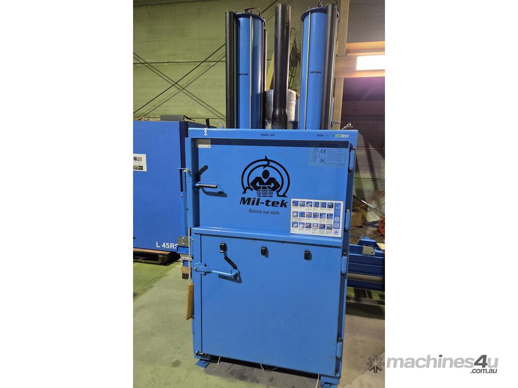 4. MIL-TEK VERTICAL CARDBOARD & PLASTICS BALING PRESS/COMPACTOR Model BP-305, ECO-DRIVE, MADE IN DENMARK, Year 2008, Compact Footprint, BIG 37 Litre Capacity, Wide Front-Loading Door for CARDBOARD & PLASTICS, ECONOMICAL LOW COST, Air Operated, Simple Maintenance - No Electrics or Hydraulics Used - Pneumatic Operation Only, Light Use Only, Heavy Duty, AS NEW. Must be Seen to Appreciate the CONDITION, QUALITY, ALSO THE EASE OF OPERATION