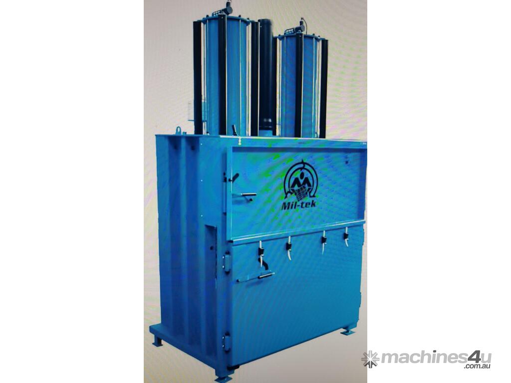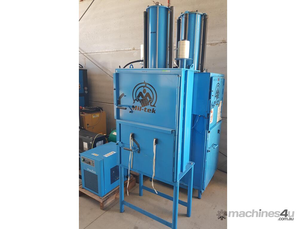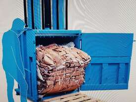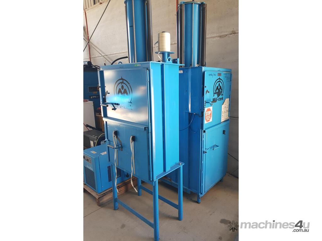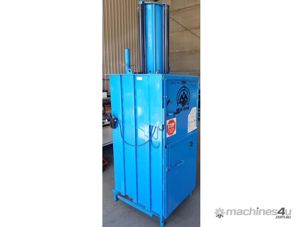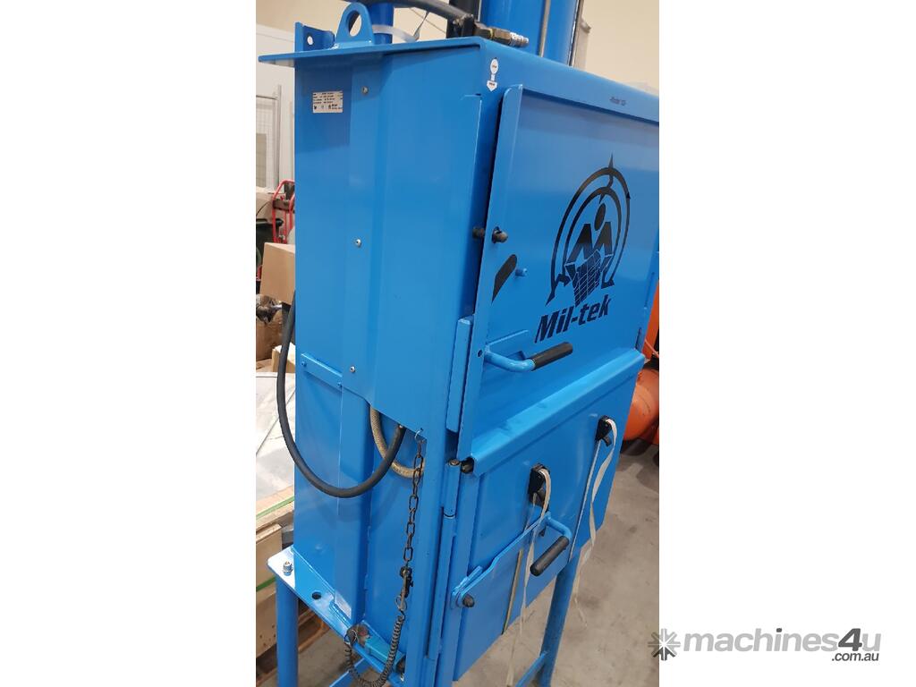 5. MIL-TEK VERTICAL CARDBOARD & PLASTICS BALING PRESS / COMPACTOR Model BP-509HD HEAVY DUTY, ECO-DRIVE, MADE IN DENMARK, Year 2011, Compact Footprint, UP TO 400kg BALE, HUGE 74 LITRE (2 x 37 LITRES) CAPACITY, WIDE FRONT-LOADING DOOR TO LOAD WHOLE CARDBOARD CARTONS WITHOUT FLATTENING, ALSO PLASTICS, ECONOMICAL LOW COST, Air Operated, Simple Maintenance - No Electrics or Hydraulics Used - Pneumatic Operation Only. QUALITY.