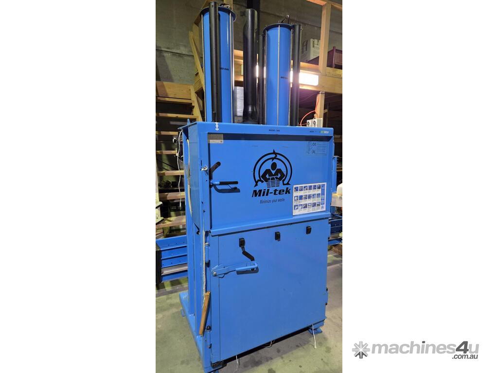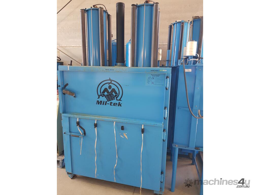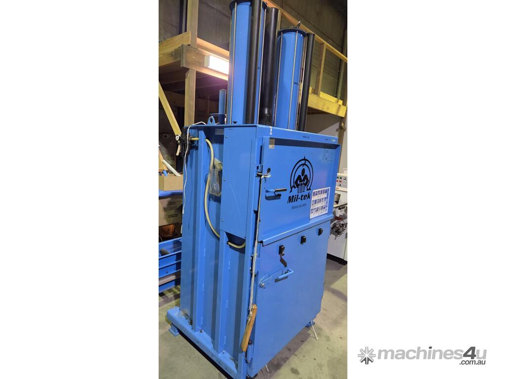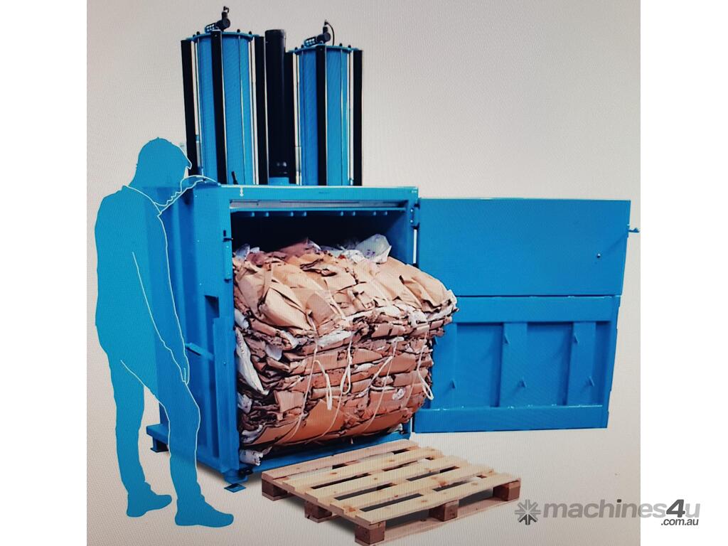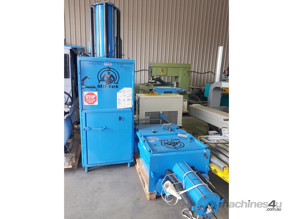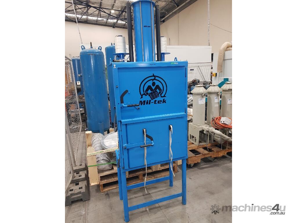 5. MIL-TEK VERTICAL CARDBOARD & PLASTICS BALING PRESS / COMPACTOR Model BP-509HD HEAVY DUTY, ECO-DRIVE, MADE IN DENMARK, Year 2011, Compact Footprint, UP TO 400kg BALE, HUGE 74 LITRE (2 x 37 LITRES) CAPACITY, WIDE FRONT-LOADING DOOR TO LOAD WHOLE CARDBOARD CARTONS WITHOUT FLATTENING, ALSO PLASTICS, ECONOMICAL LOW COST, Air Operated, Simple Maintenance - No Electrics or Hydraulics Used - Pneumatic Operation Only. QUALITY.