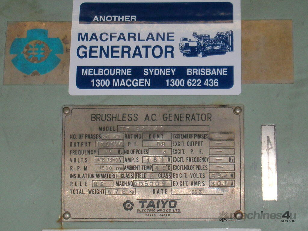 Taiyo Alternator T557A1, 130 kVA Single bearing