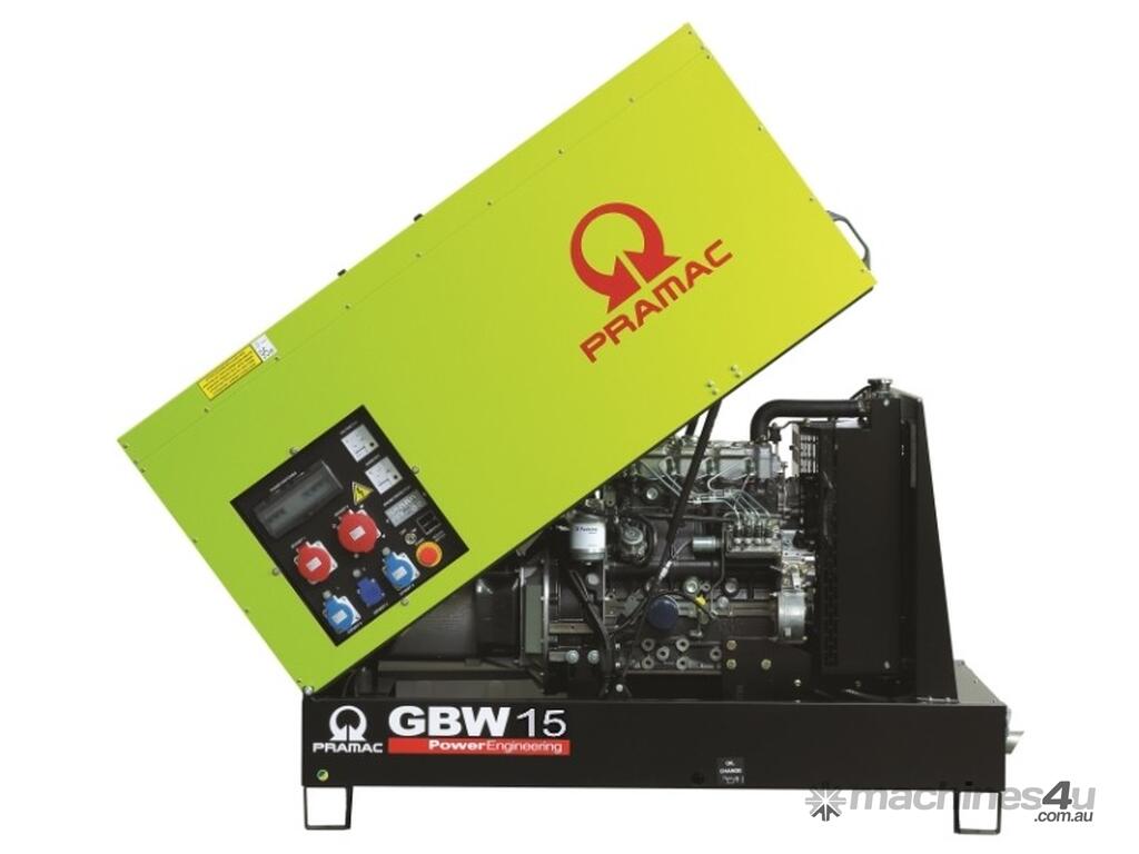 The Pramac GBW15P-PFL three-phase generator is powered by a Perkins diesel engine and built with a Meccalte alternator delivering 14kVA of standby power. Mounted on a solid welded steel base frame with anti-vibration mountings, the unit comes standard in a sound-reducing, weather-protected enclosure suitable for outdoor use. A digital control panel and main circuit breaker are also standard features of this high-quality generator set.