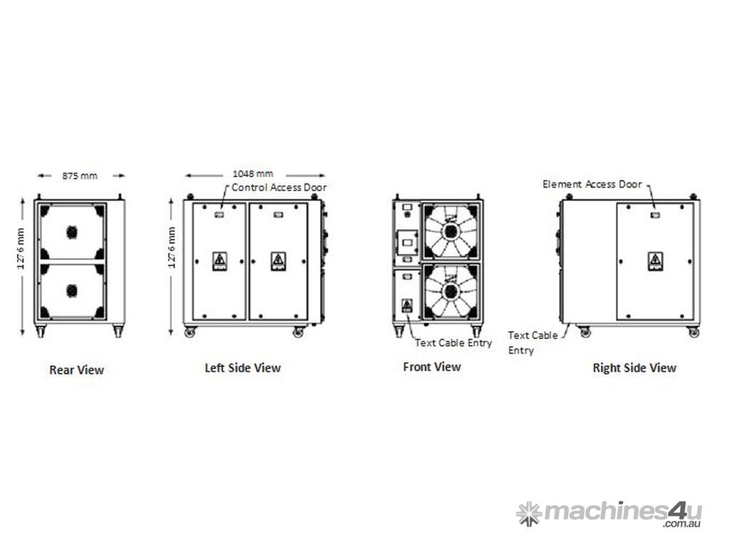Cooling: Two fans, forced air cooling. Comes with electrical interlocking system and thermal sensors for safe operations.