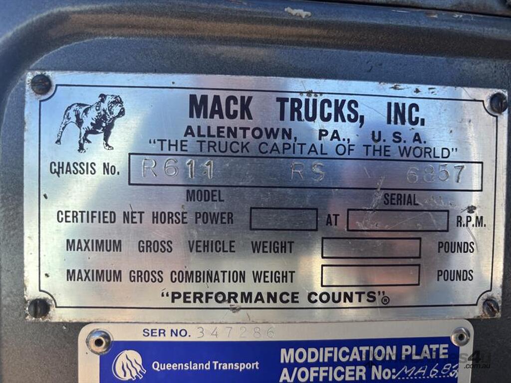 MACK R611 PRIME MOVER, S/N: R611RS6857, 258,937 KM SHOWING, 6,906 HOURS SHOWING. NO REGISTRATION, NO COI. LOCATION: OFFSITE IN EMERALD, QLD 4720. INSPECTIONS & COLLECTIONS: BY APPOINTMENT ONLY. ENQUIRIES: JOHN MCDOUGALL ON OR JOHNEMERALDAUCTIONCENTRE