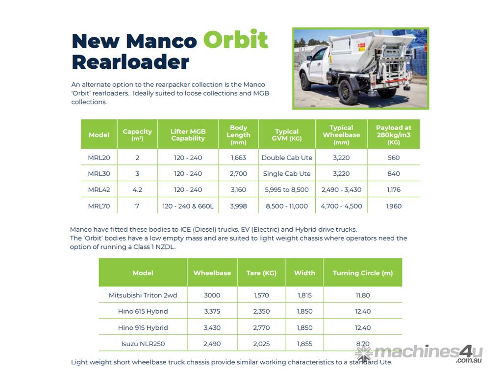 The Manco Orbit Range is the perfect solution for food waste collection, navigating narrow laneways, and operating as a satellite collection unit. Designed to transfer waste seamlessly to larger collection vehicles or bins, this system is built to excel in urban and green environments alike.