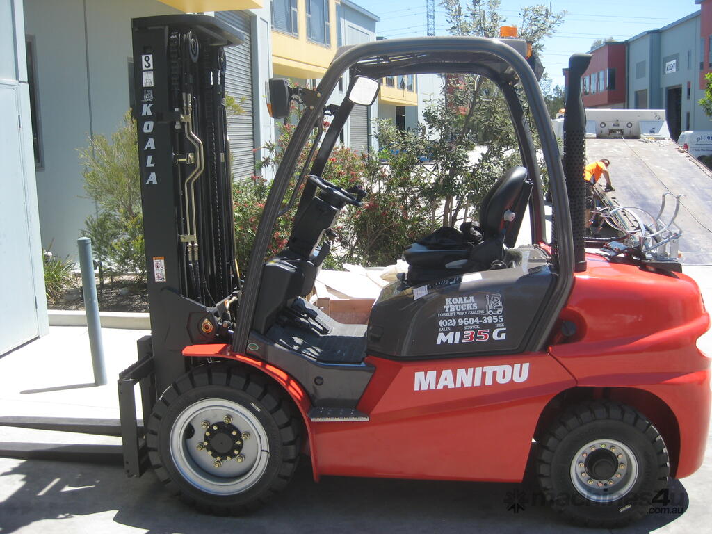 The Manitou MI35G is a top-of-the-line forklift designed for professional use. With its monobloc chassis, strengthened masts, and axles, this machine is built to handle even the toughest jobs with ease. The Okamura transmission in the small and medium tonnage units ensures optimal efficiency of the engines, while the Powershift transmission in the large tonnage units is specifically developed for heavy-duty applications.Equipped with a high-quality air filter system as standard, you can trust that your Manitou MI35G will perform reliably day in and day out. Whether you're moving materials in a warehouse or on a construction site, this forklift has got you covered. Invest in the Manitou MI35G today and experience unparalleled performance and durability in every task.