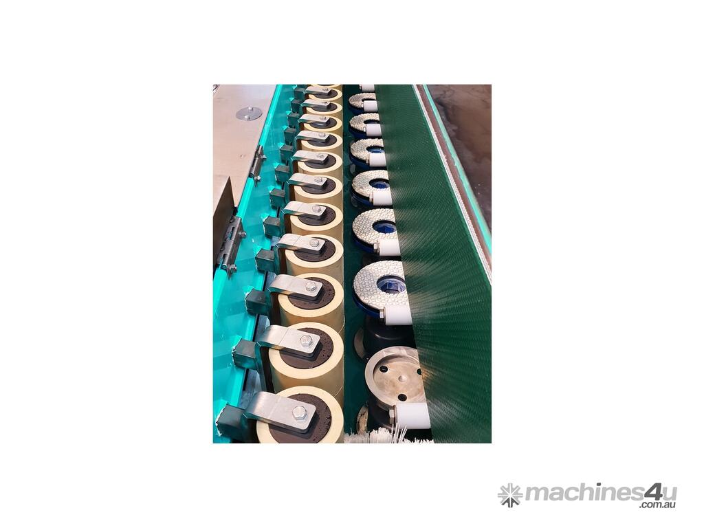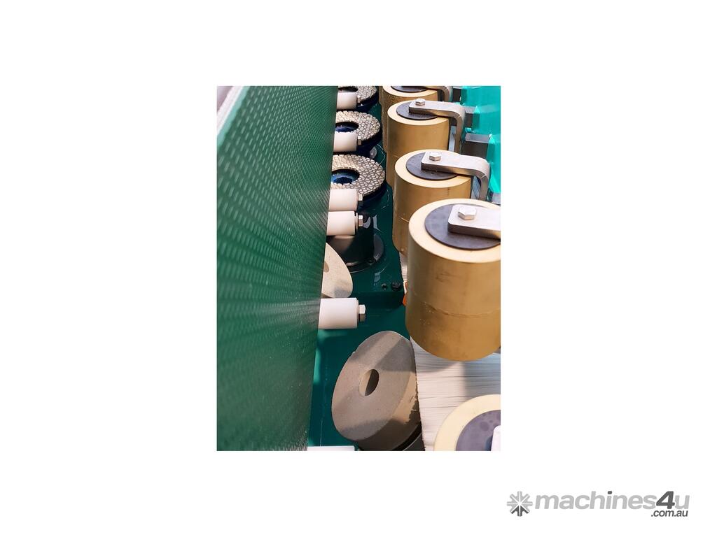 The LCV machine is a multi head polishing unit for flat or arrised edges from 10 to 60mm thick. The LCV is belt driven, this type of machine means that all the pieces can be continuously fed onto the belt and move past a series of polishing heads.